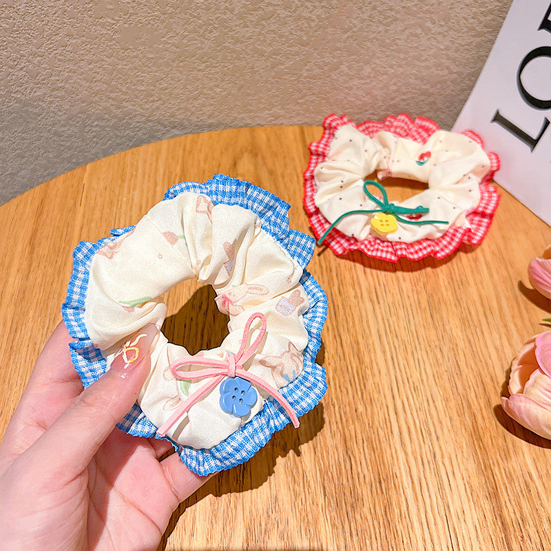 ยางรัดผมลูกไม้ลายดอกไม้ Handmade Forest Style พร้อมโบว์และปุ่ม สำหรับเด็กผู้หญิงและเด็กวัยหัดเดิน