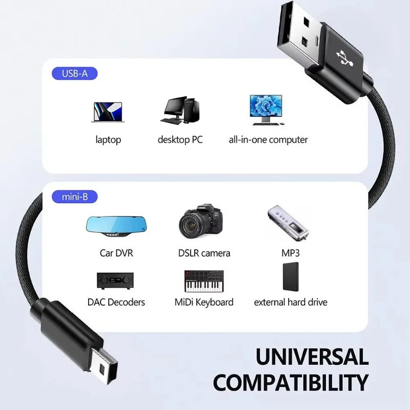 สาย USB ขนาดเล็ก USB A ถึง Mini USB Cable 5 Pin 480Mbps USB2.0 ชายกับชาย Fast Charging Data CABLE