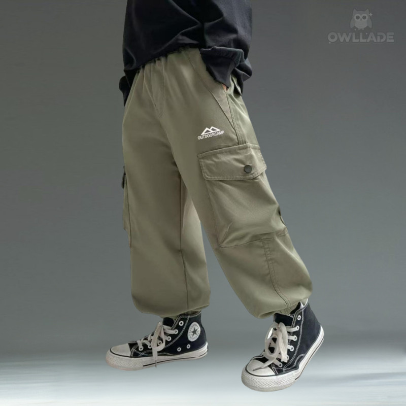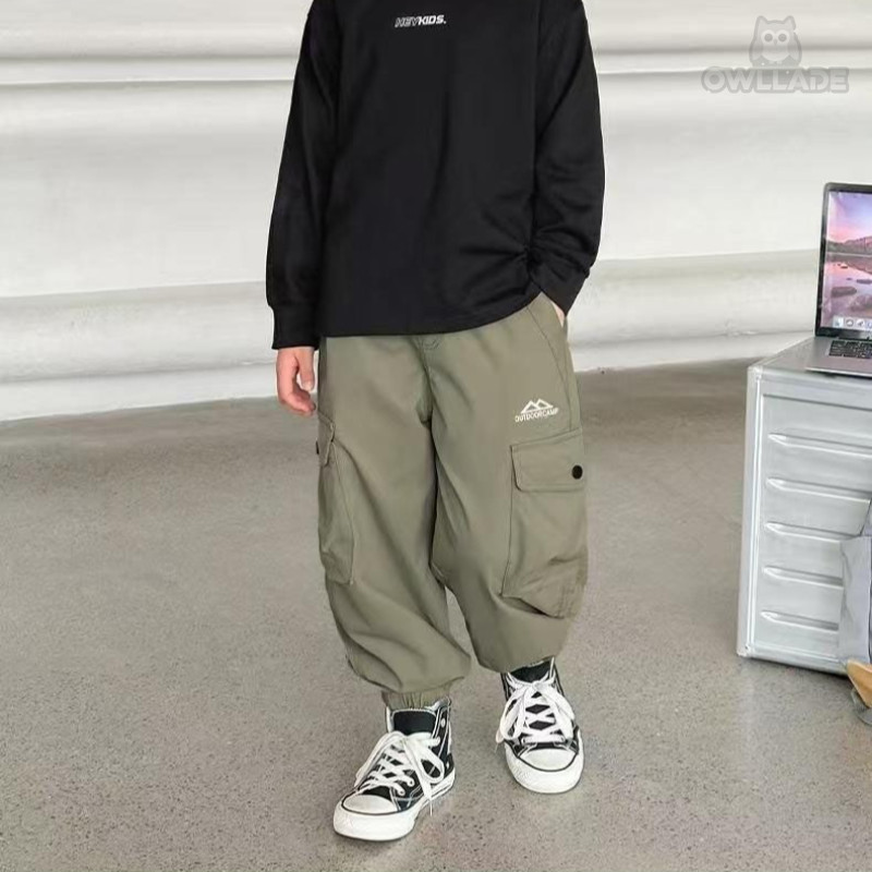 OWLLADE กางเกงจ็อกเกอร์คาร์โก้ สีเขียว เหมาะสำหรับเด็กชาย ขนาด 4T-2