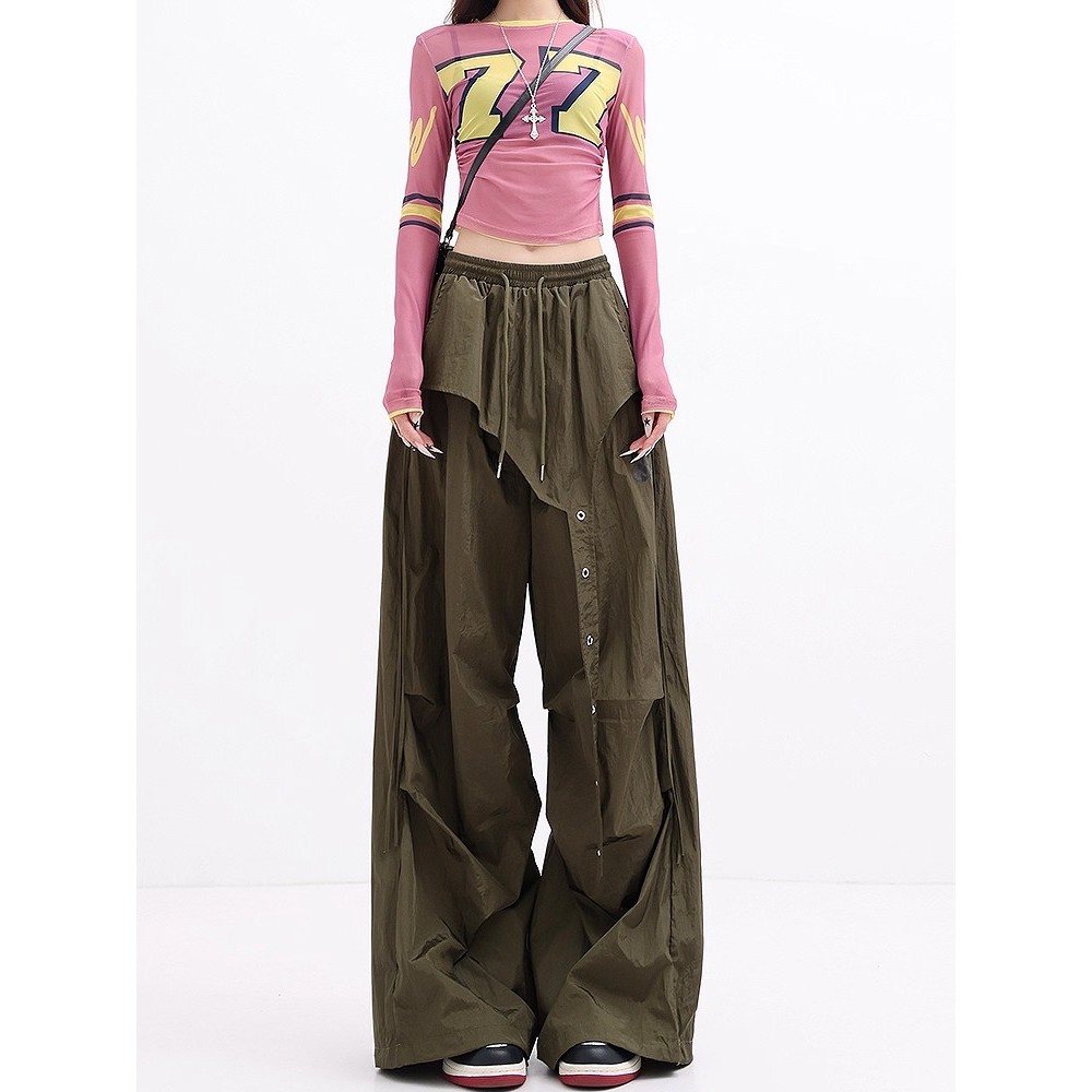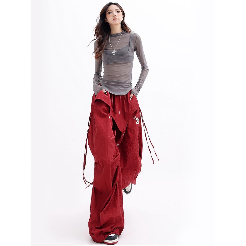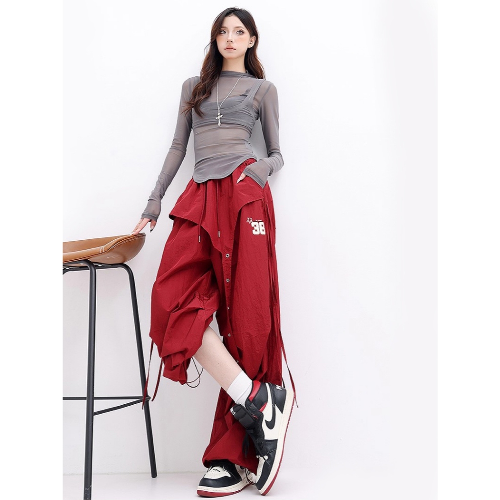 [Summer quick-drying fabric, sports wide-leg pants]กางเกงขากว้างสไตล์สตรีทลำลองสำหรับเล่นกีฬาเต้นรำผู้หญิง