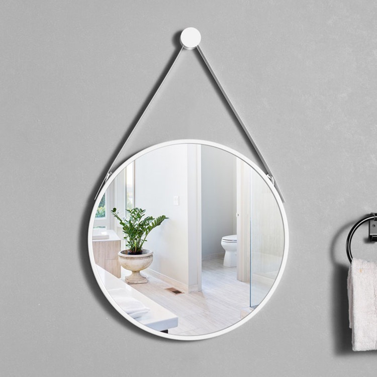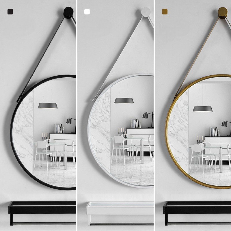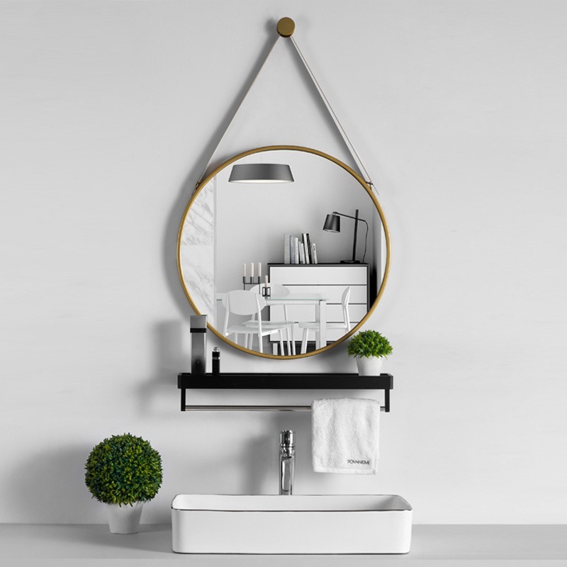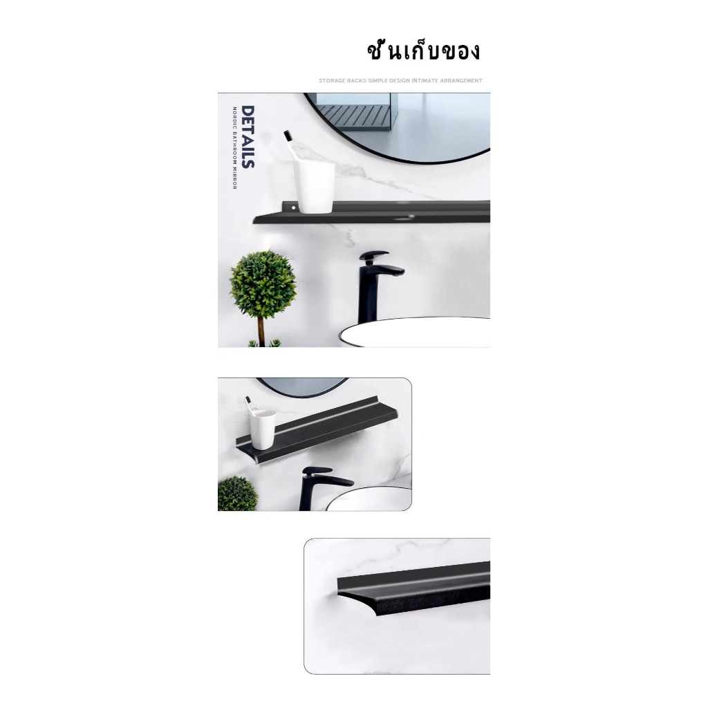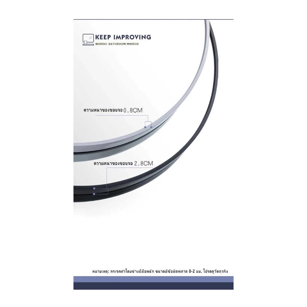 กระจกห้องน้ำ ขอบอลูมิเนียม ขนาด 40 / 50 / 60 ซม. สีดำ / ทอง / ขาว พร้อมสายแขวน ดีไซน์มินิมอล แข็งแรง ทนทาน