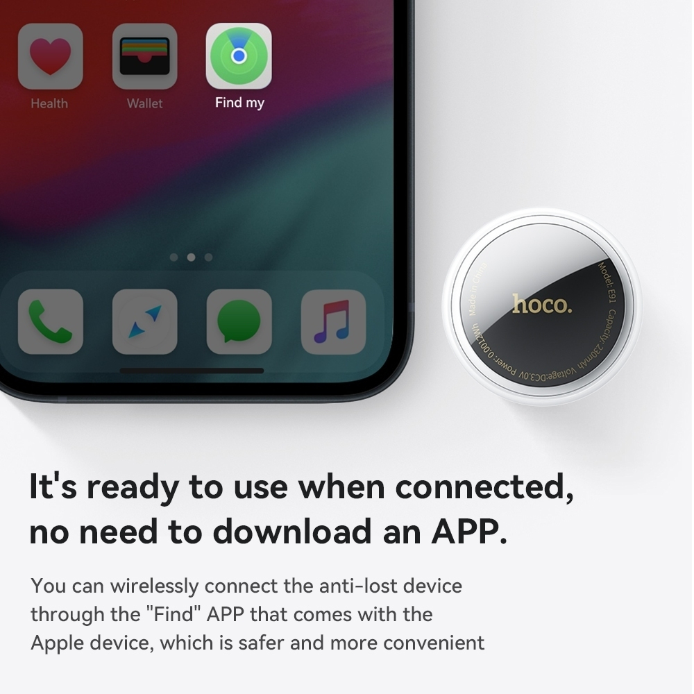 HOCO E100 Tag GPS Tracker Support Find My ไม่ต้องใช้แอปพลิเคชั่นอื่นๆ อายุการใช้งานแบตเตอรี่ 9-12 เดือน