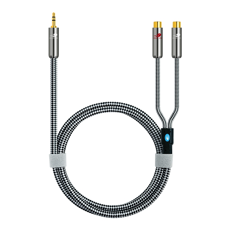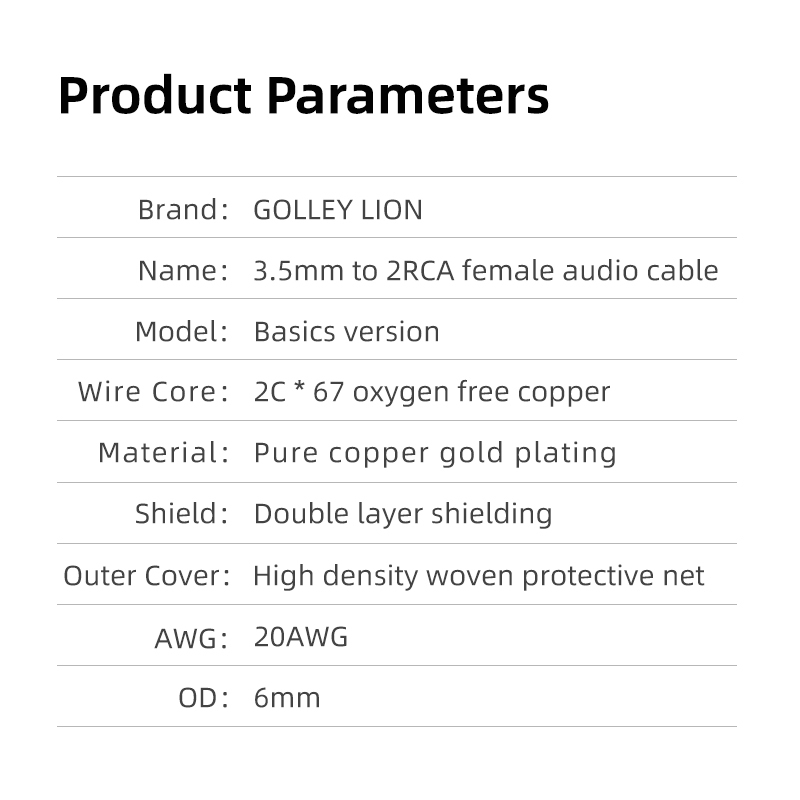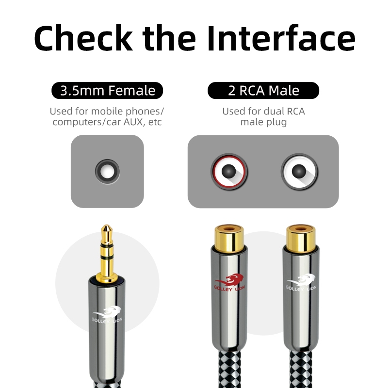 GOLLEY LION สายแยก AUX to RCA Y, 3.5 มม.ชาย 2RCA หญิงสเตอริโออะแดปเตอร์เสียง, เสียง Hi-Fi สายเสริม, ขั้วต่อ 1/8 นิ้วสําหรับ iPhone, แท็บเล็ต, คอมพิวเตอร์, MP3, ลําโพง