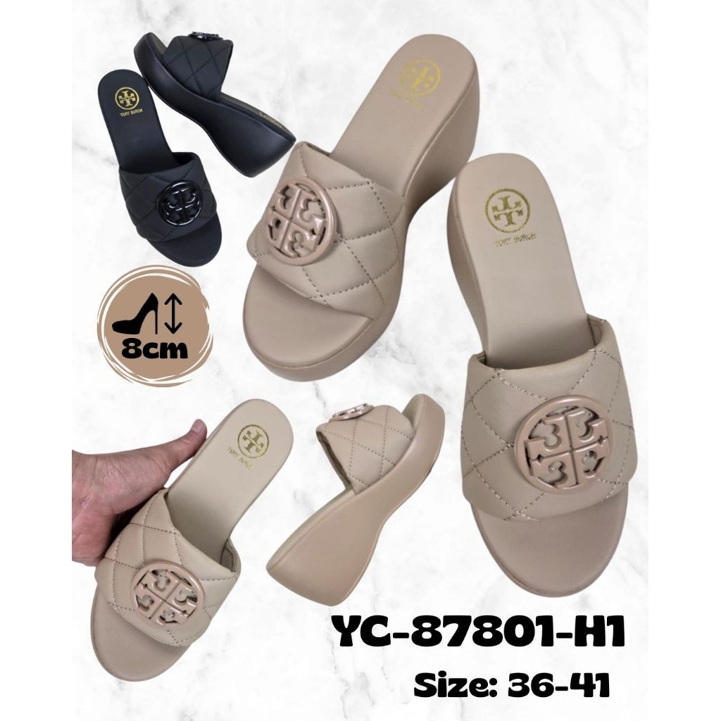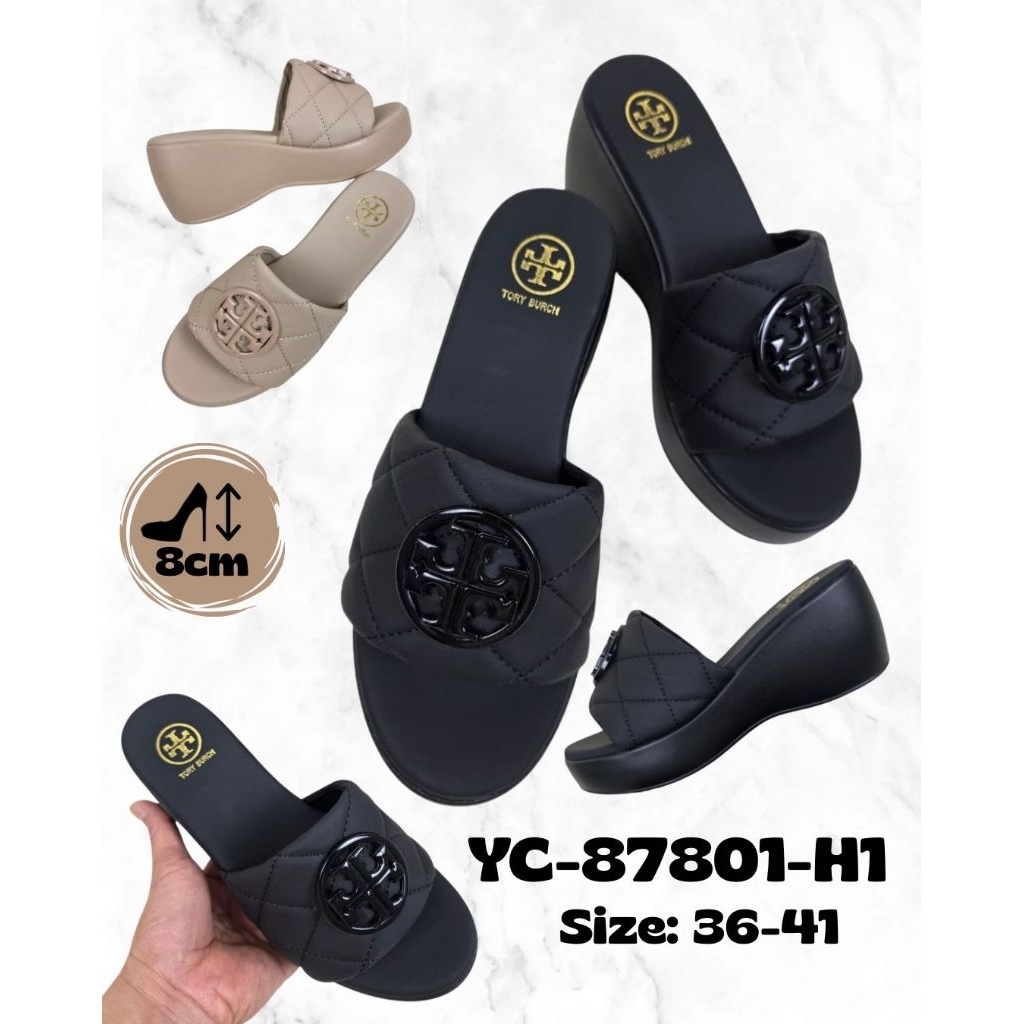 * TORY BURCH YC-87801-H1 ลิ่มสไลด์แพลตฟอร์ม 8 ซม. *