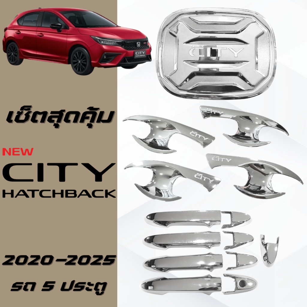 เบ้าประตู ครอบมือจับประตู ครอบฝาถังน้ำมัน ซิตี้ 20-25 hatchback 5ประตู ชุบโครเมี่ยม HONDA CITY 2020-2025 5ประตู hatchbac