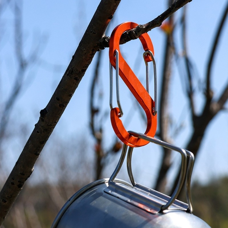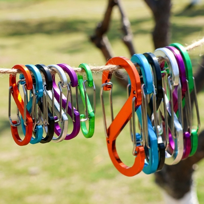 S Shaped Carabiner อลูมิเนียมอัลลอยด์ตะขอคลิปคู่สำหรับตั้งแคมป์ตกปลาเดินป่า