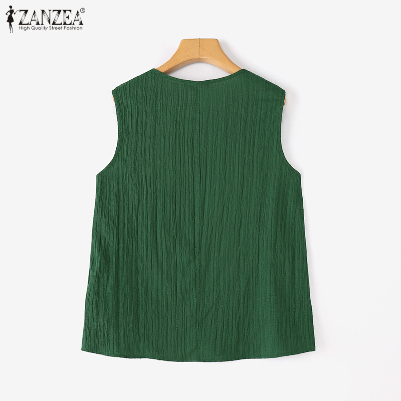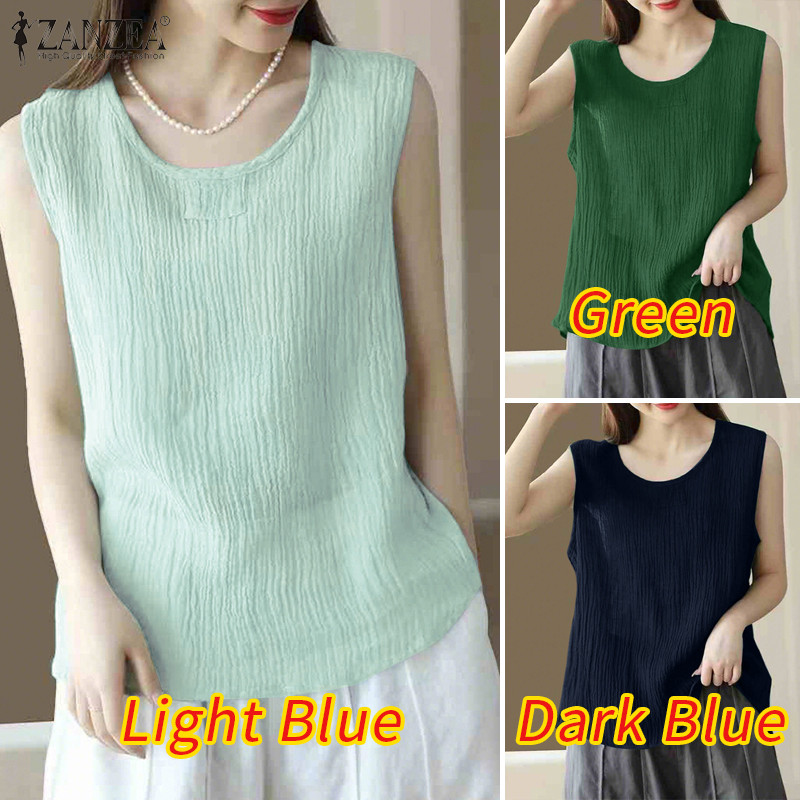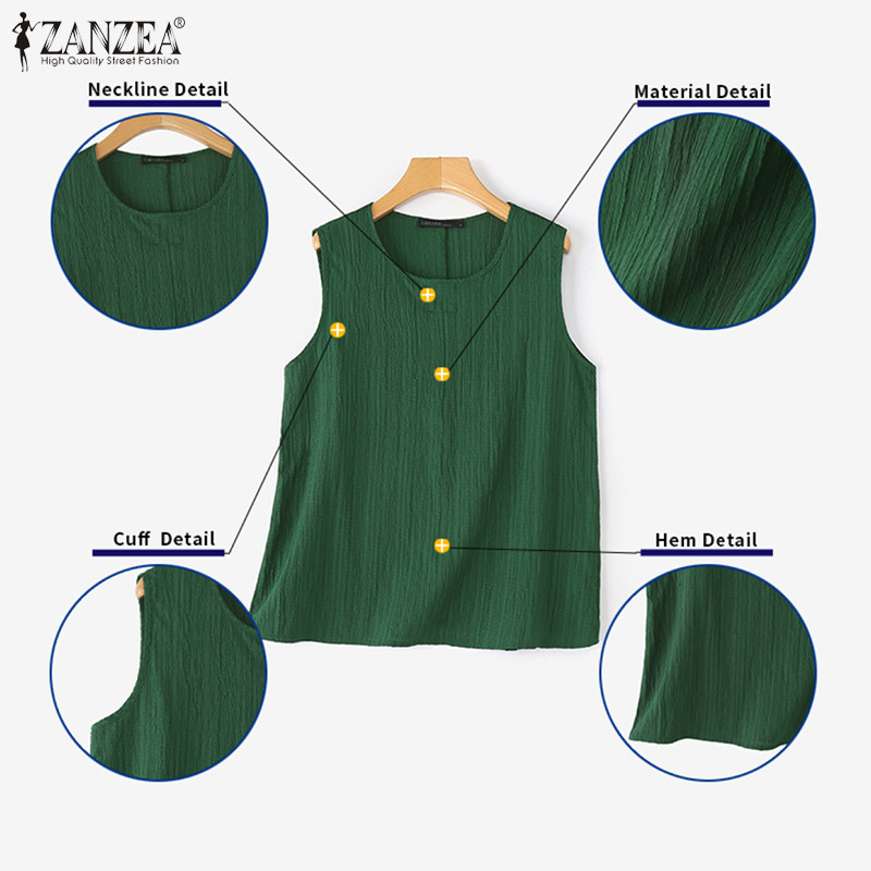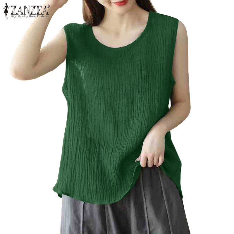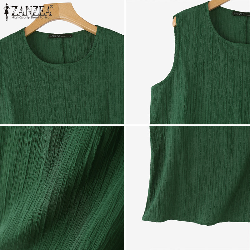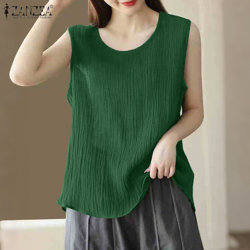 ZANZEA – tank top สไตล์เกาหลี มินิมอล คอรอบกลม ไม่มีแขน ออกแบบพอง