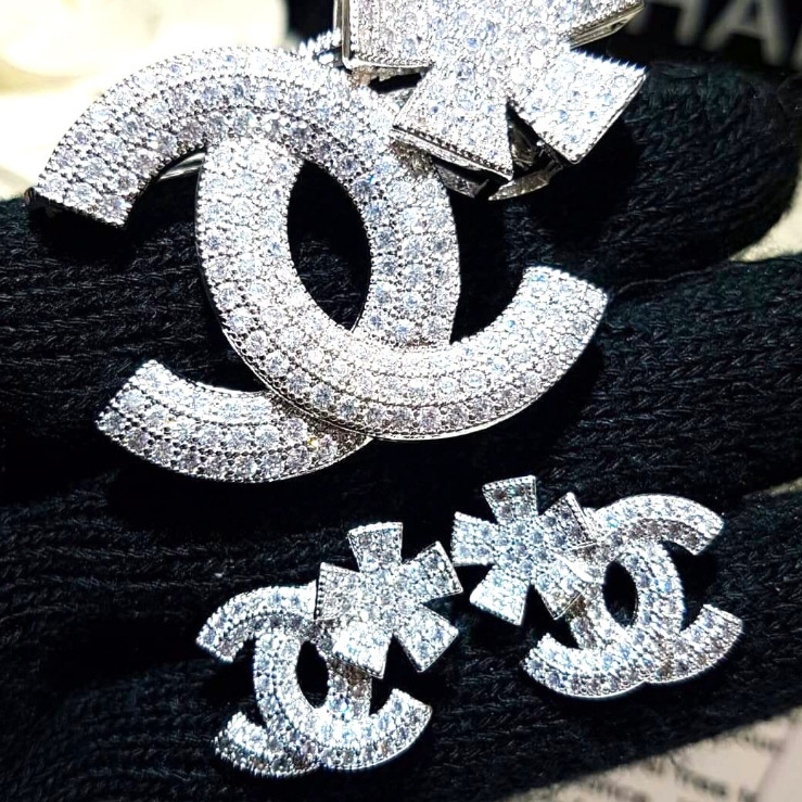 [JPT]งานจริงขาวใสเหมือนในรูป เข็มกลัด cc เซ็ต ต่างหู เพชร CZ งาน S925 แท้