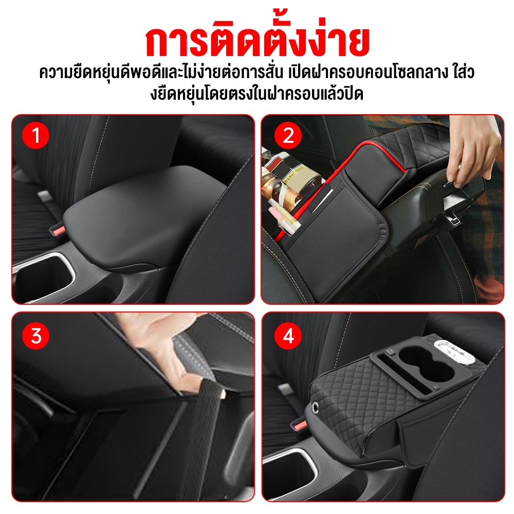 4 ใน 1รถคอนโซลกลางเบาะ เบาะ ที่เท้าแขนกล่อง เบาะ กล่องกระดาษทิชชู ปู่ หนังที่เท้าแขนปลอกหมอนอิง เบาะ