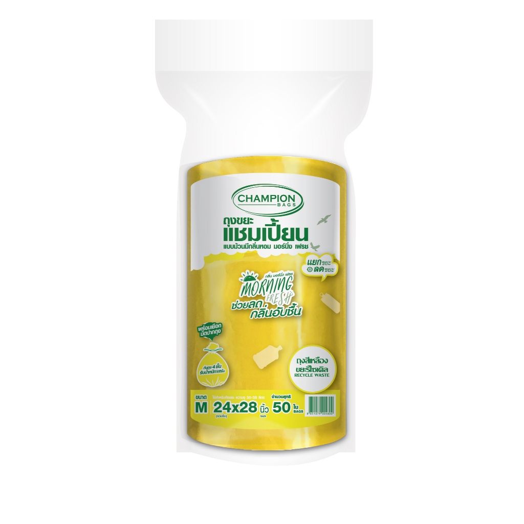 (ยกกระสอบ 40 แพ็ค)ถุงขยะแชมเปี้ยน แยกประเภทขยะ กลิ่นมอร์นิ่ง เฟรช**กด 1 ออเดอร์ ต่อ 1 กระสอบ**