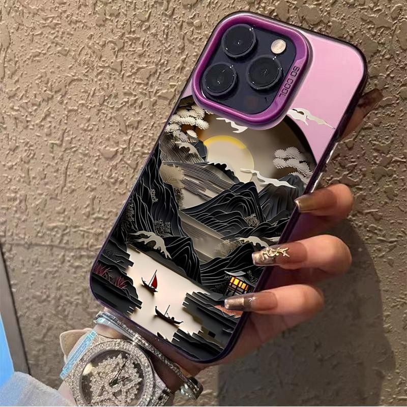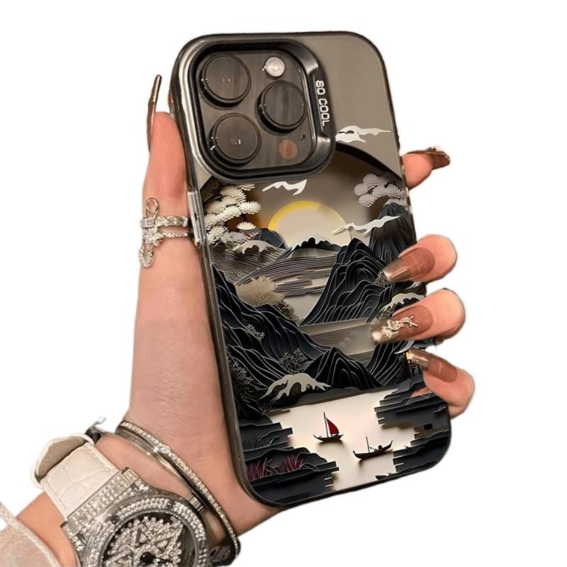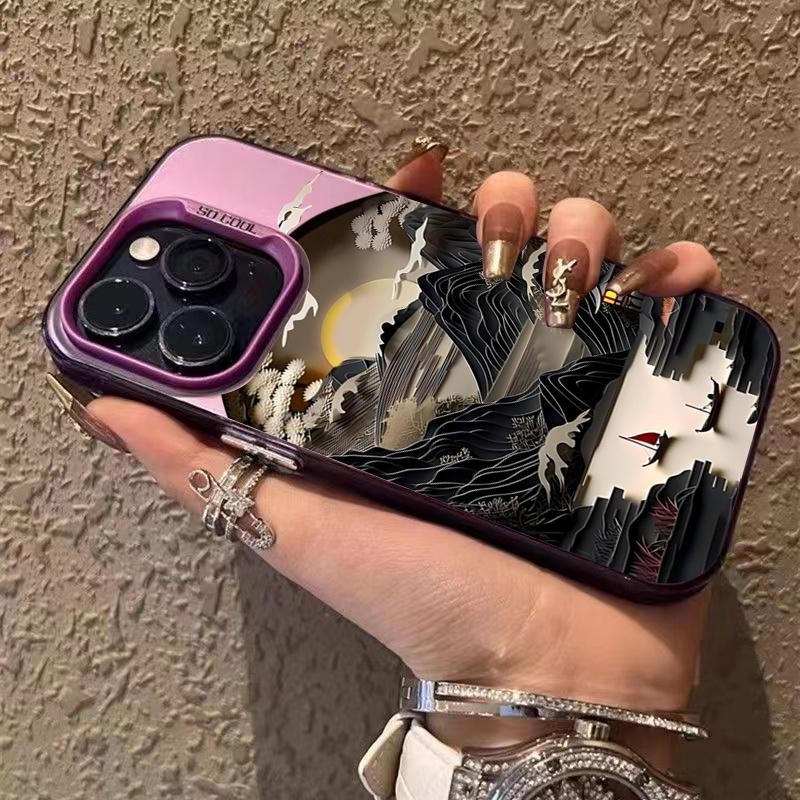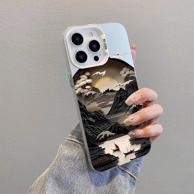 กรณีภูมิทัศน์จีนสําหรับ ไอโฟน 16 15 14 13 12 11 มือโปร สูงสุด เอ็กซ์อาร์ 7 8 บวก กันกระแทกฝาครอบป้องกันหน้าจอปลอก