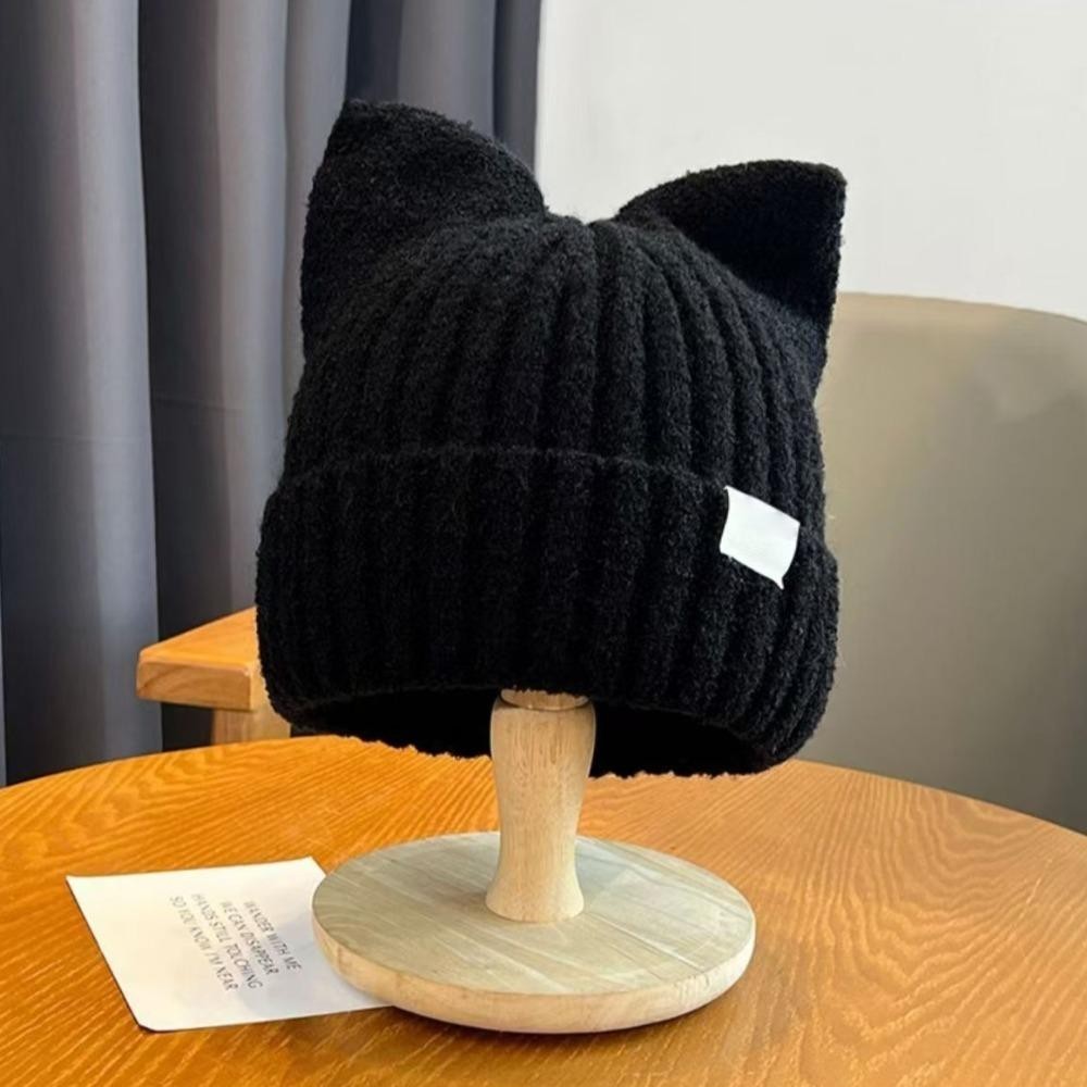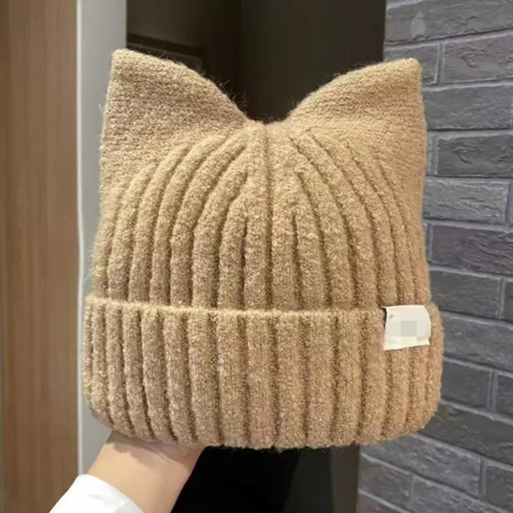 AHUITYJ Brimless Beanie หมวก,กํามะหยี่หนาป้องกันหูWindproofหมวก,น่ารักแมวหูถักSoft Beaniesถักหมวกกีฬากลางแจ้ง