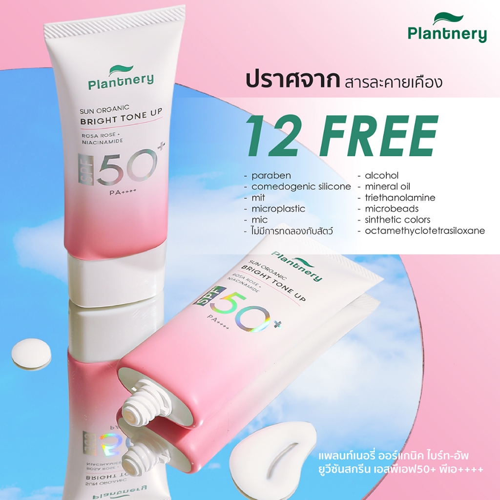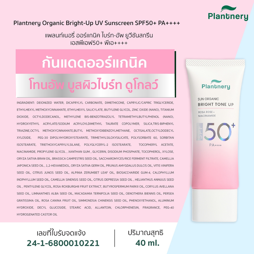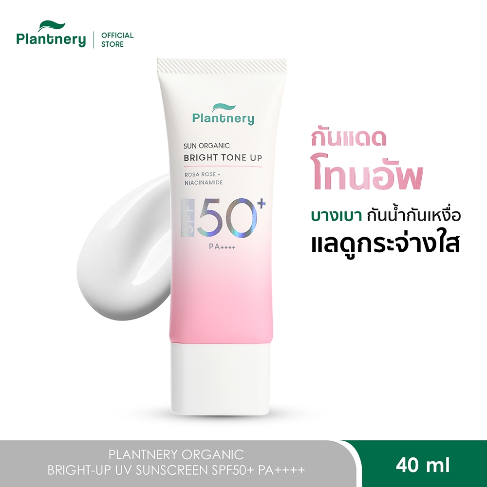 Plantnery Organic Bright-Up UV Sunscreen SPF50+ PA++++ 40 ml กันแดดโทนอัพ บางเบา กันน้ำกันเหงื่อ พร้อมบำรุง ดูกระจ่างใส