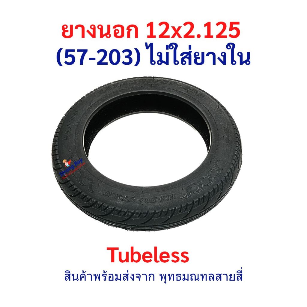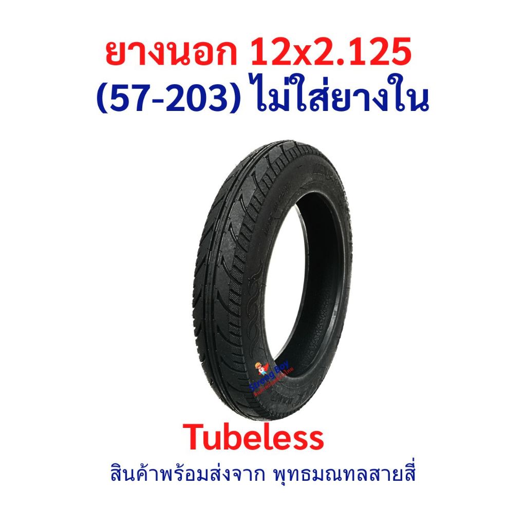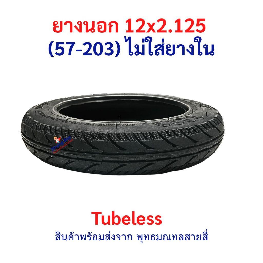 ยางนอก 12x2.125 (57-203) Tubeless ไม่ต้องใส่ยางใน อะไหล่ จักรยานไฟฟ้า นุ่มนวน เกาะถนน ยางนอก สกู๊ตเตอร์ไฟฟ้า