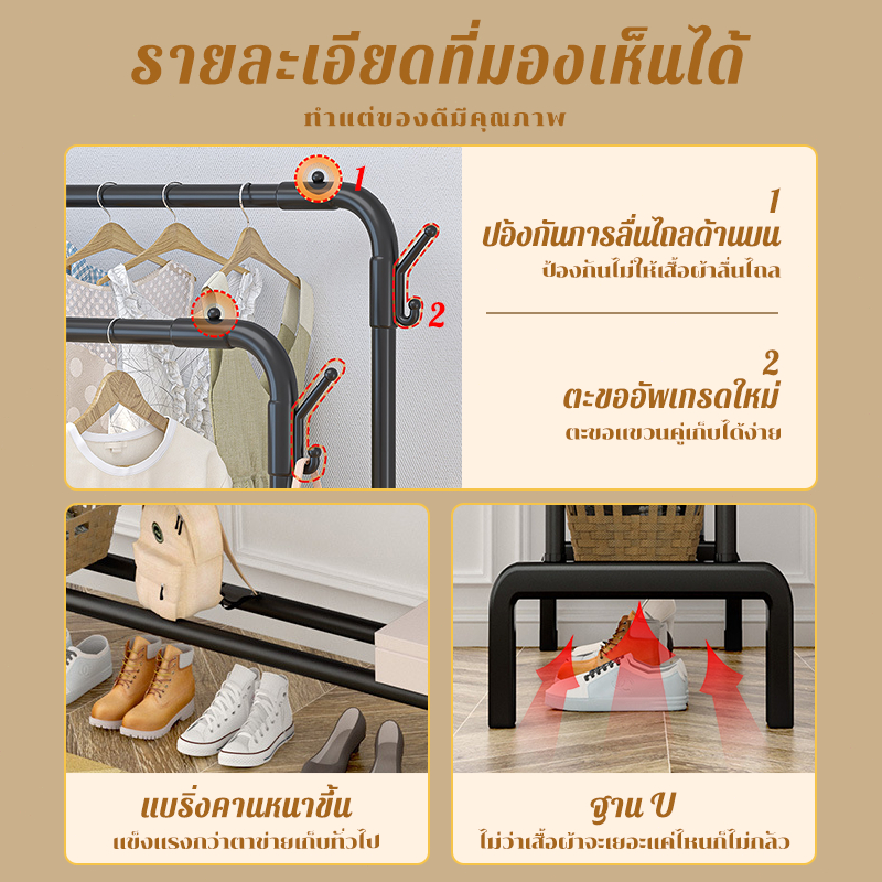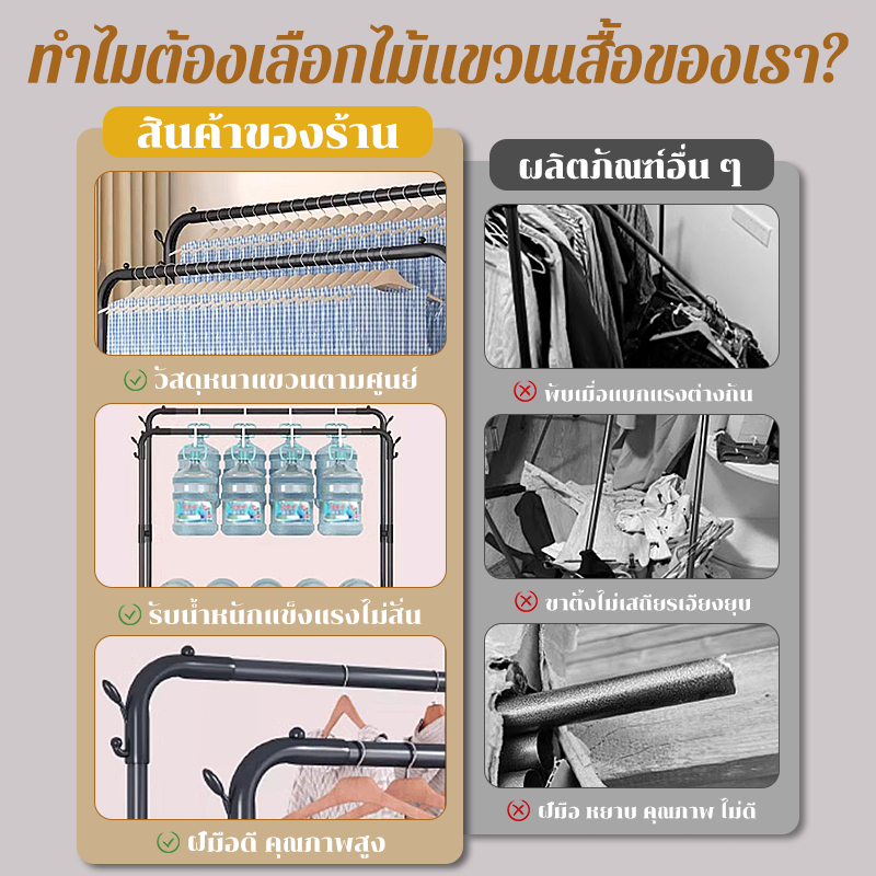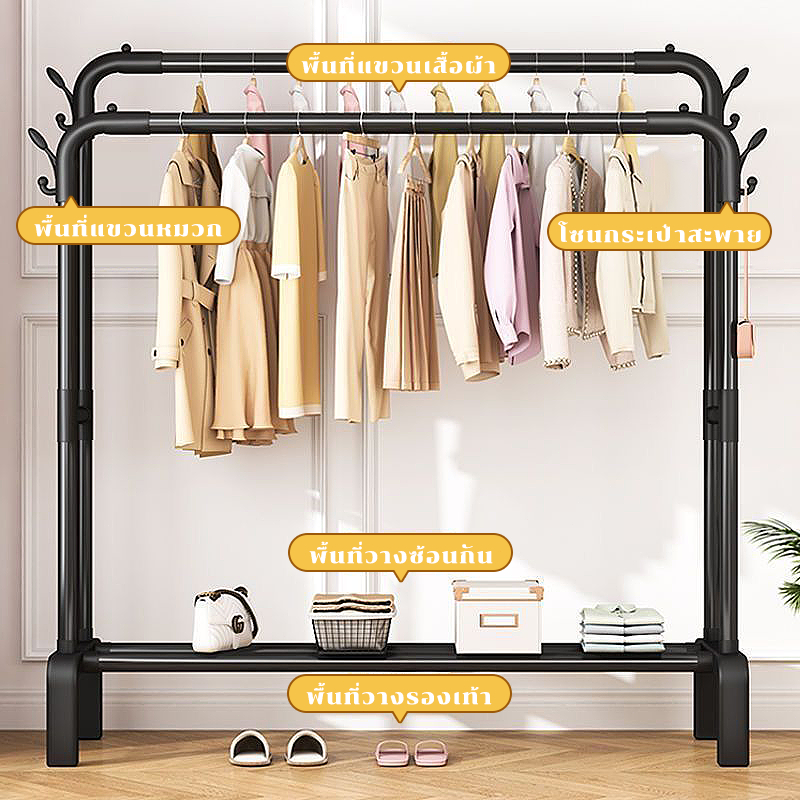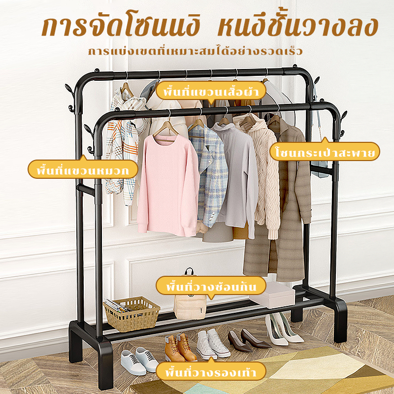 .ราวเเขวนเสื้อผ้า พร้อมที่แขวนกางเกง ราวตากผ้าบาร์คู่ ที่แขวนหมวก ชั้นวางของเหล็ก ที่แขวนเสื้อผ้า+ที่แขวนกางเกง โครงเหล็