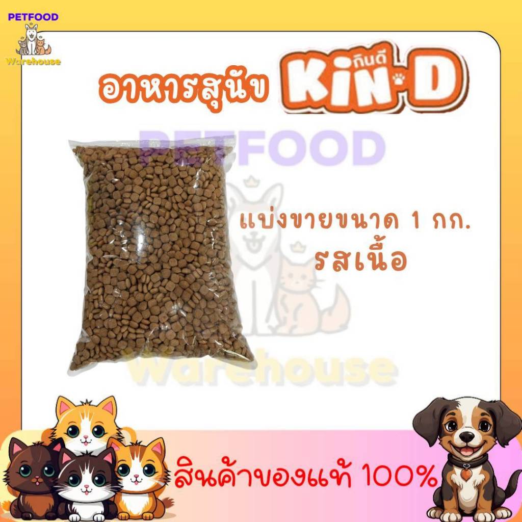 อาหารสุนัข Kin Dee อาหารสุนัข กินดี สูตรสุนัขโต แบบแบ่งขายใส่ถุงใสรสเนื้อ ขนาด1kg