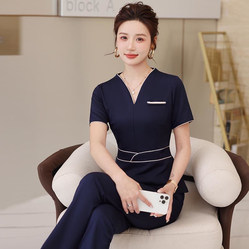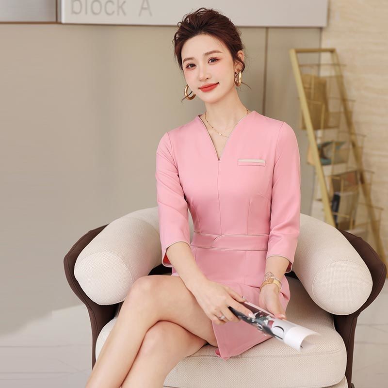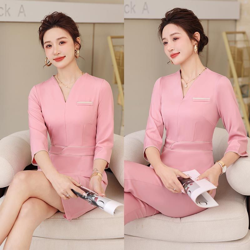 ชุดทำงานสำหรับสถานประกอบการเสริมสวย สไตล์ผู้หญิงแขนยาว ออกแบบมาเพื่อดูเรียบหรู และเพิ่มความสดใส