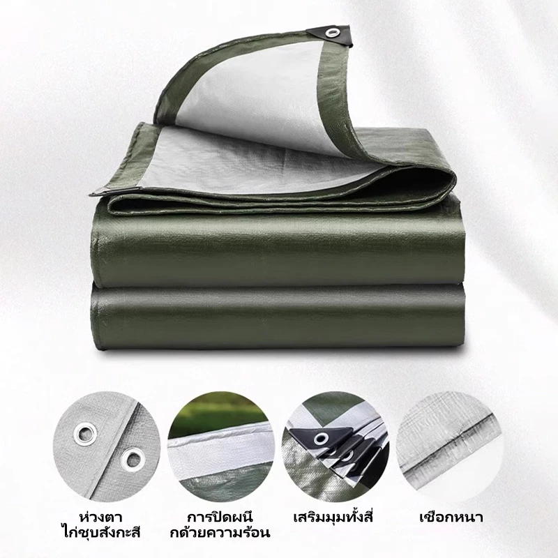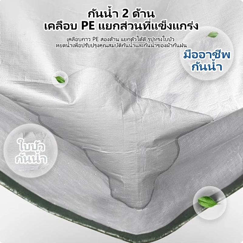 สีเขียว สีเงิน:ด้านนอกเป็นสีเขียวเข้มและด้านในเป็นสีเงิน เคลือบกันน้ำสองด้าน