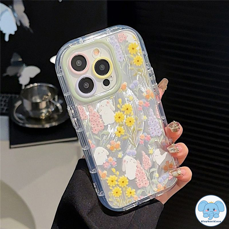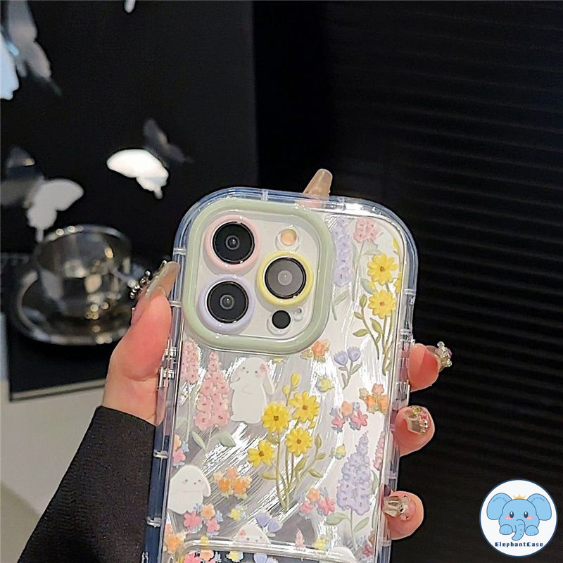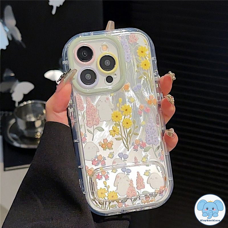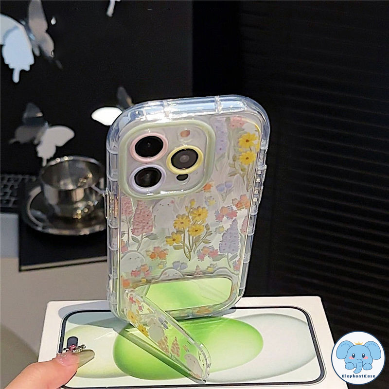 เคสไอโฟน 15 สำหรับ IPhone 13 11 15 16 12 14 ProMax 16 15 14 Plus XR X XS Max เคสขาตั้งดอกไม้สีสันสดใสโรแมนติกน่ารัก