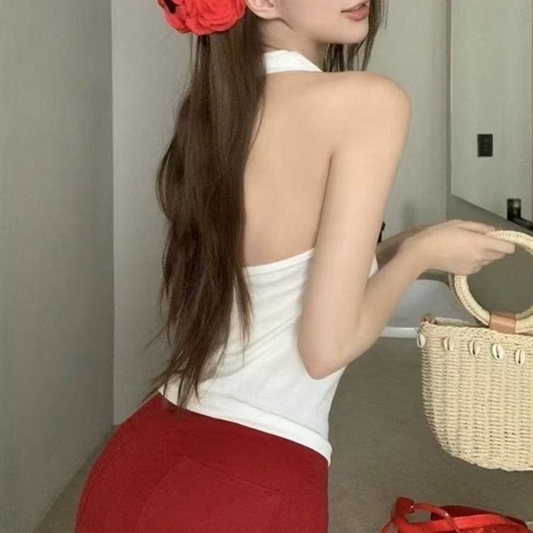 เสื้อคล้องคอเปิดหลัง ผ้านุ่มนิ่ม เซ็กซี่เข้ารูป สีพาสเทล แฟชั่นผู้หญิง B03