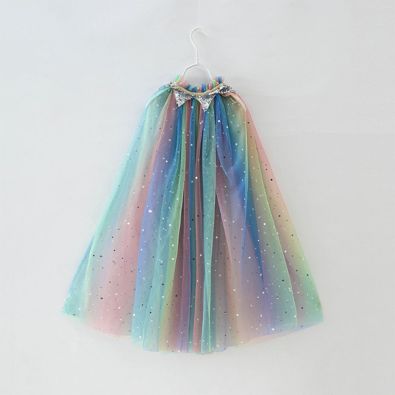 เสื้อคลุมตาข่ายเอลซ่าพร้อมเลื่อมเงาแจ๊กเก็ตคลุมไหล่ชุดเจ้าหญิงสีรุ้ง
