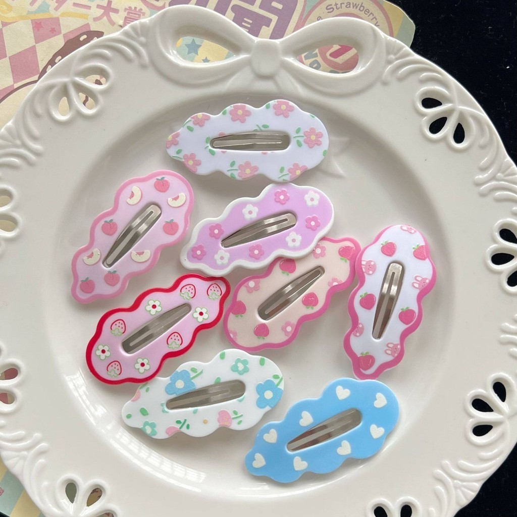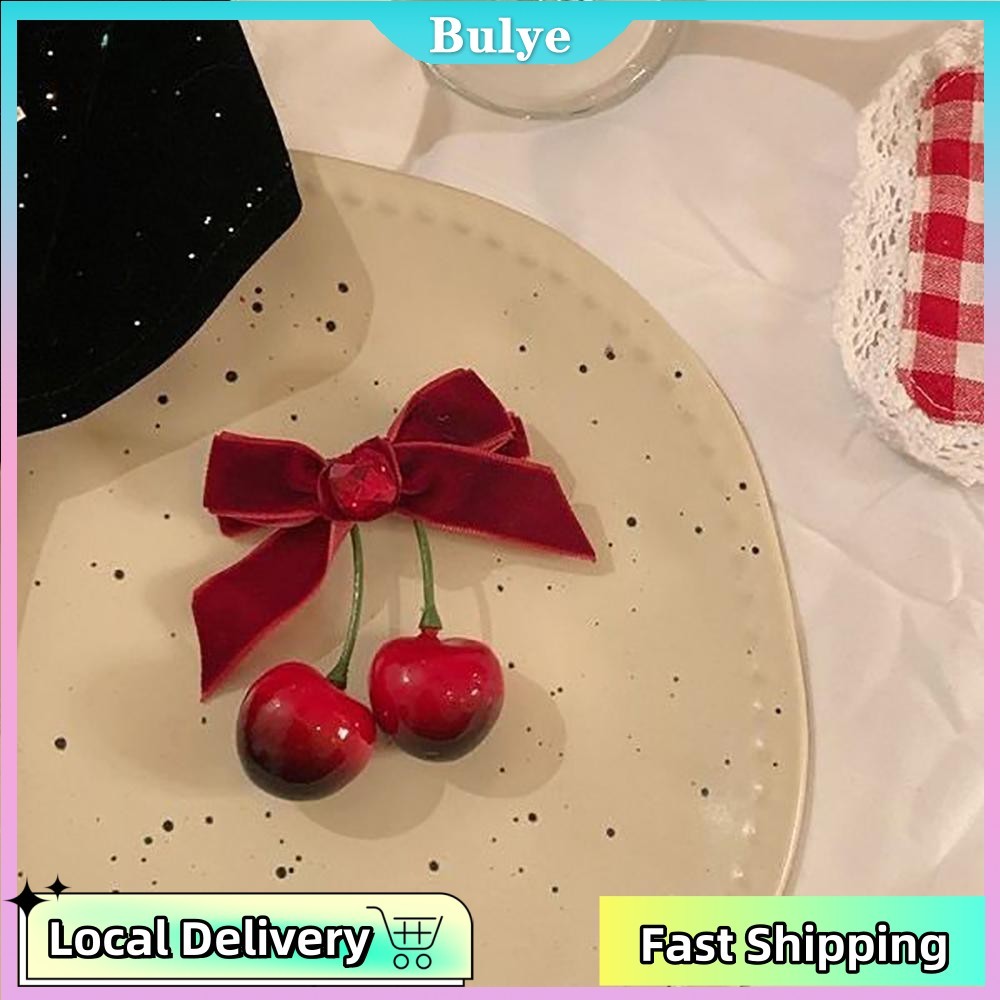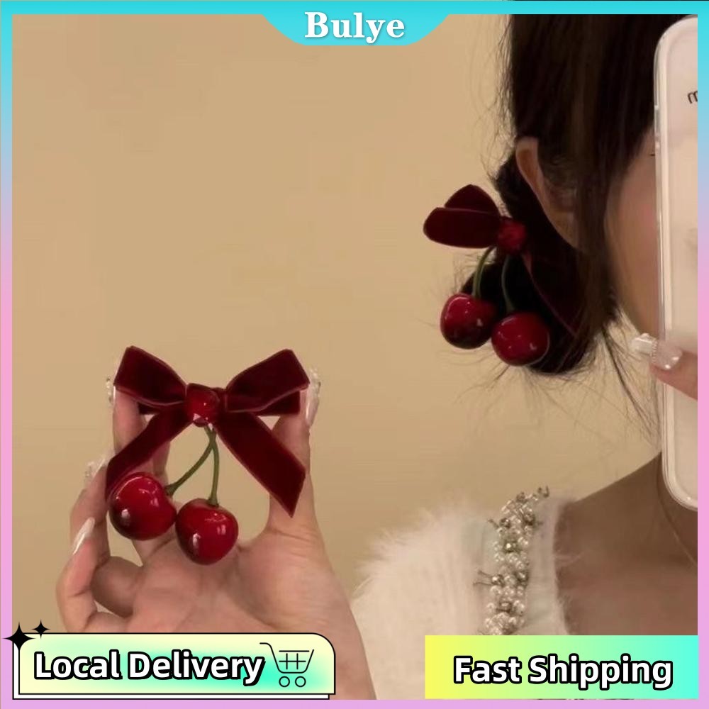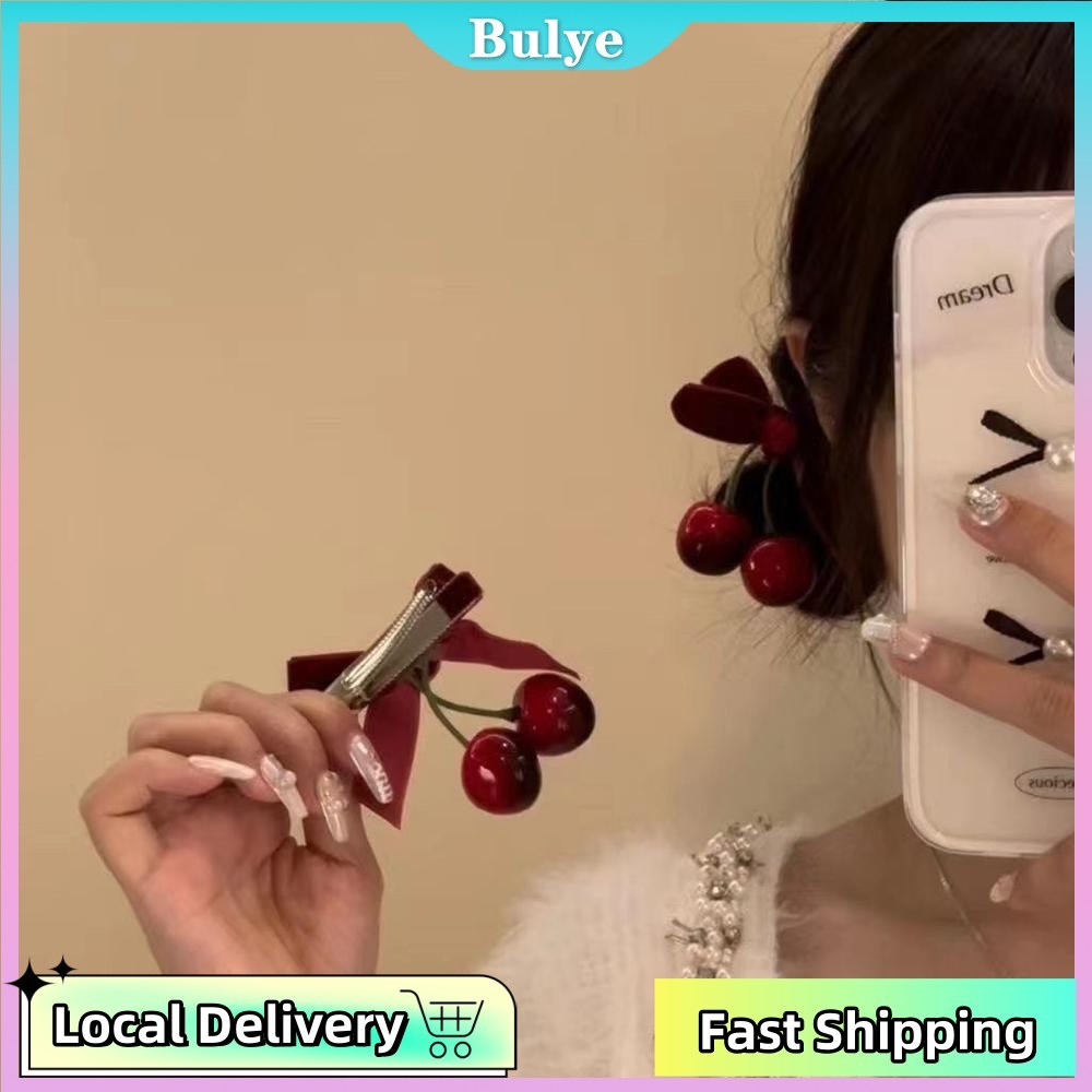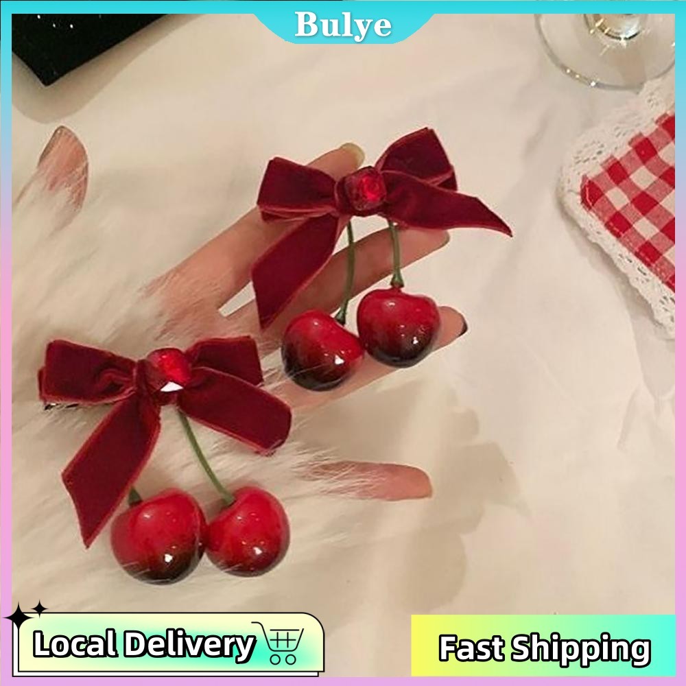 (จัดส่งในพื้นที่) สไตล์เกาหลีการ์ตูนกํามะหยี่สีแดงกุทัณฑ์เชอร์รี่กิ๊บสาวหวานด้านเรียบกิ๊บเครื่องประดับผม