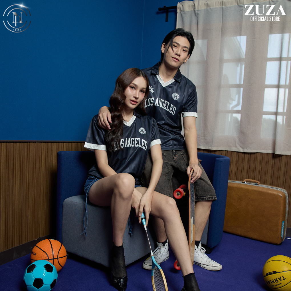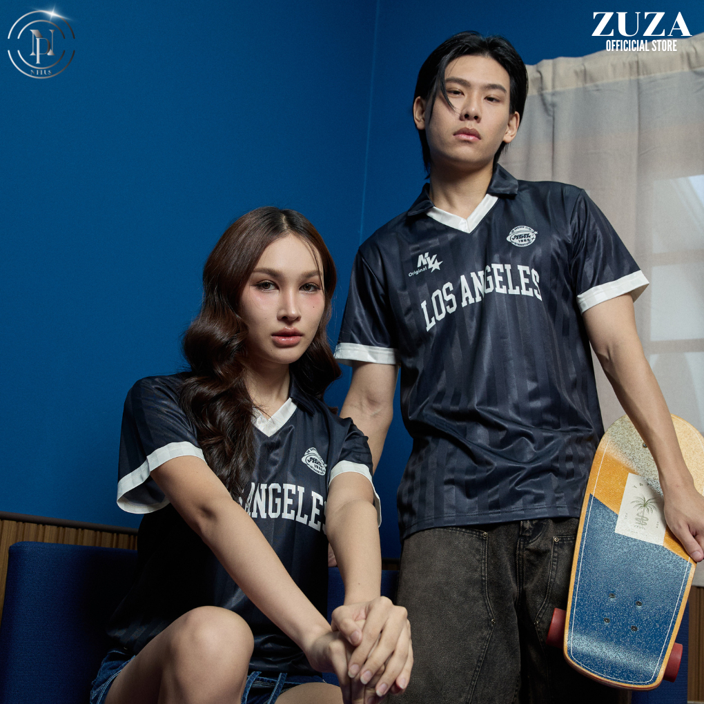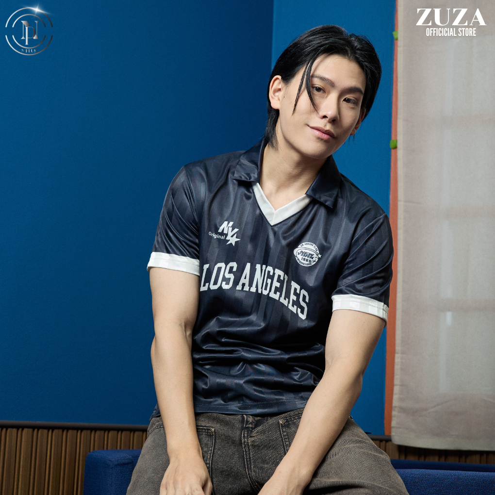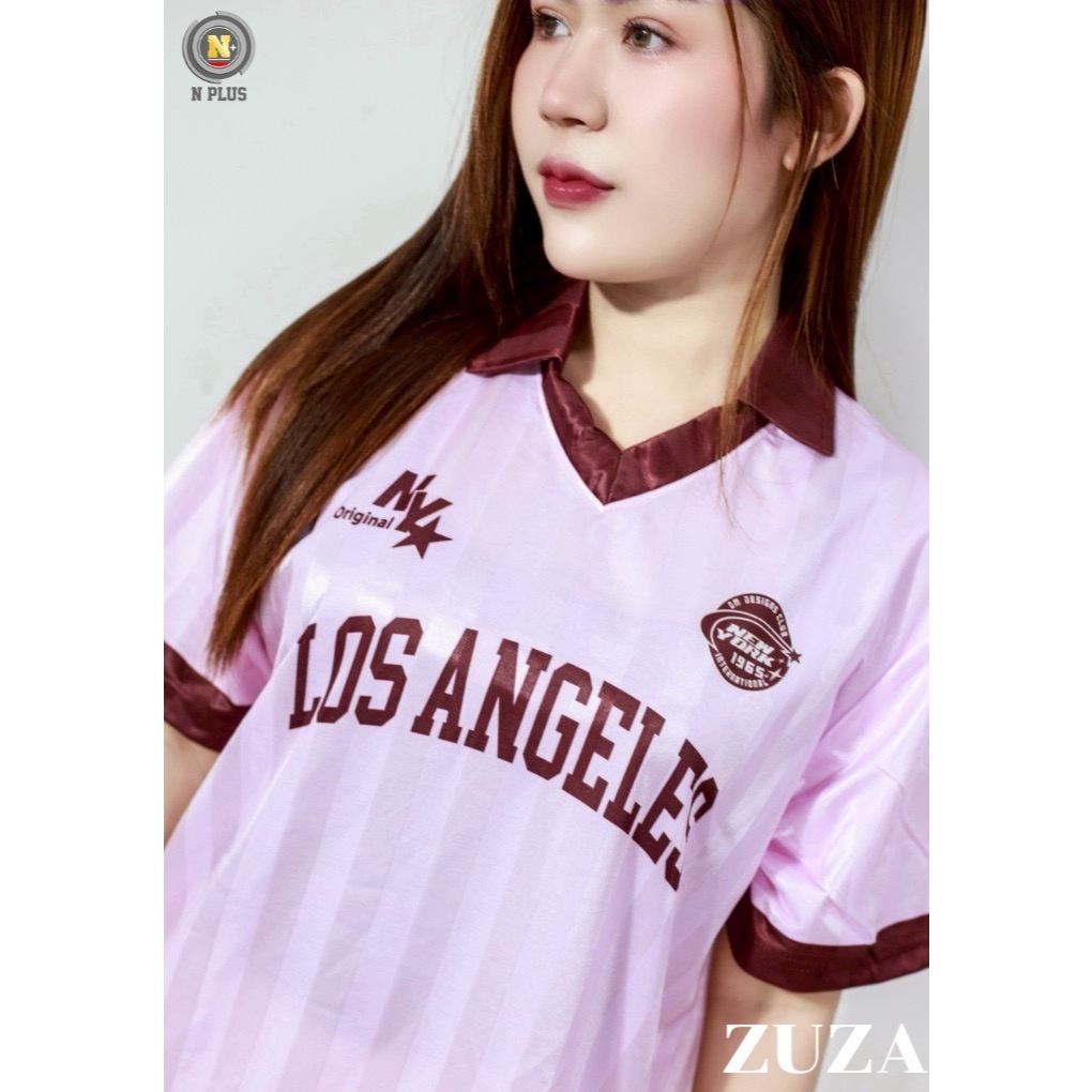 GM Designs LA Jersey-เสื้อคอปกแฟชั่น สไตล์อเมริกันฟุตบอล ผ้าไมโครลายริ้วเงาอย่างดี ใส่ได้ทั้งชาย หญิง