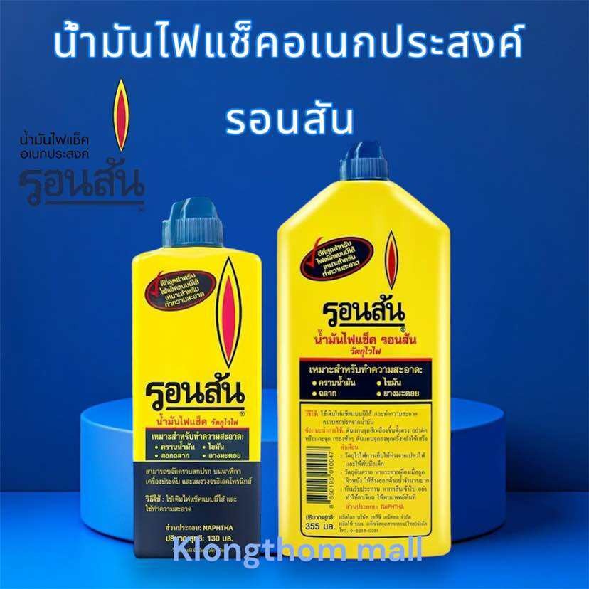 น้ำมันรอนสัน 130มล และ 355มลรอนสันRonSoNolน้ำมันไฟแช็คน้ำมันทำความสะอาดเช็ดยางมะตอยลอกฉลากสินค้าน้ำมันไฟแช็คเอนกประสงค์