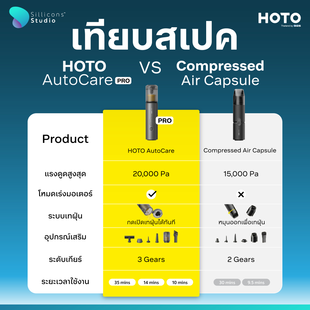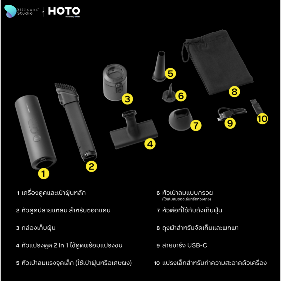 HOTO เครื่องดูดฝุ่นมือถือไร้สาย 4-in-1 ดูด/เป่าแรง 12,000-20,000Pa Car&Handheld Vacuum 4-in-1 (ประกันศูนย์ไทย15เดือน)