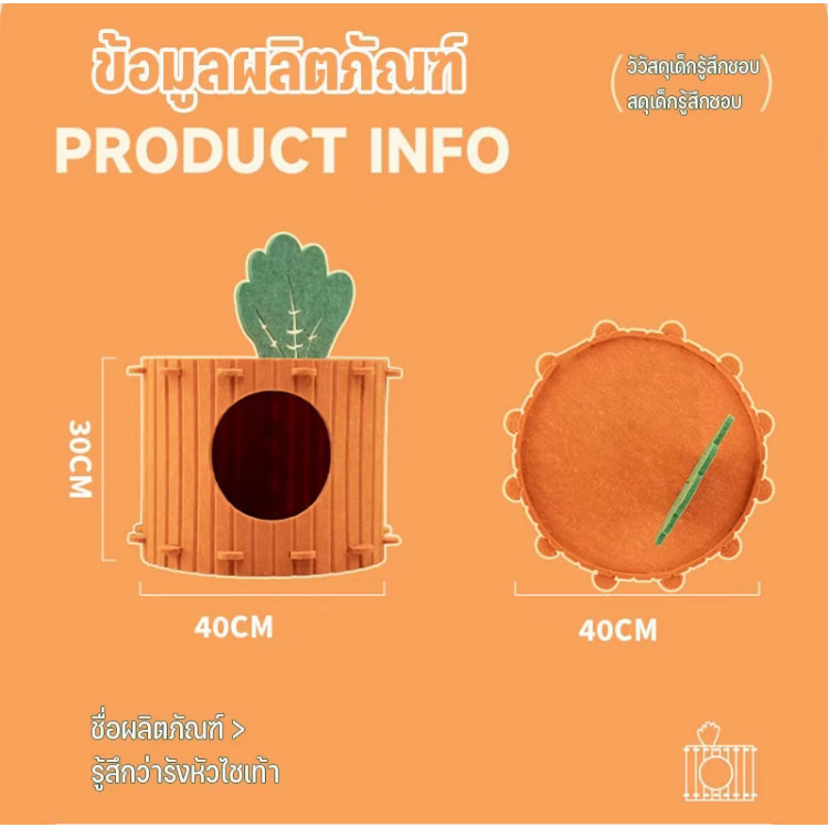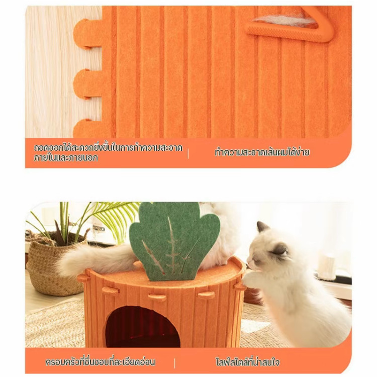 ? บ้านแมวแครอท ที่นอนแมว ของเล่นแมว คอนโดแมว ? ✅อเนกประสงค์ สามารถใช้เป็นบ้านแมว ที่นอนแมว ของเล่นแมว คอนโดแมว ตกแต่งแมว ✅ทนทานต่อรอยขีดข่วน ไม่ต้องกังวลเรื่องแมวข่วน ✅เบาะมีความนุ่มนิ่ม เจ้านายนอนหลับสบาย ✅ทำความสะอาดง่าย สามารถถอดเบาะนอนออกมาซักได้ ✅แมว