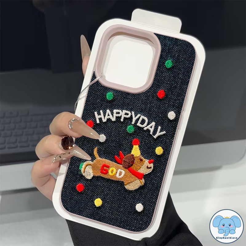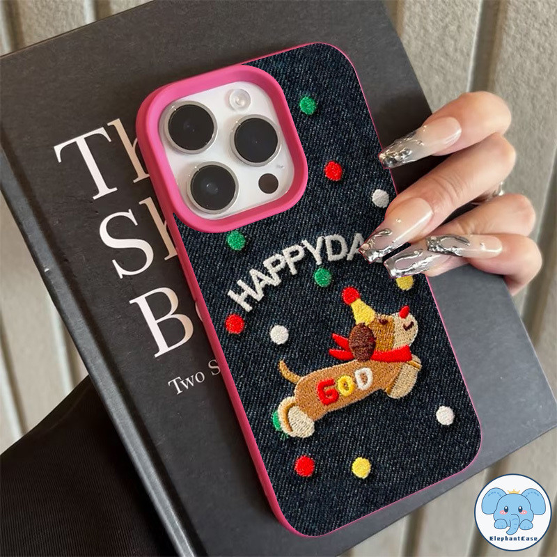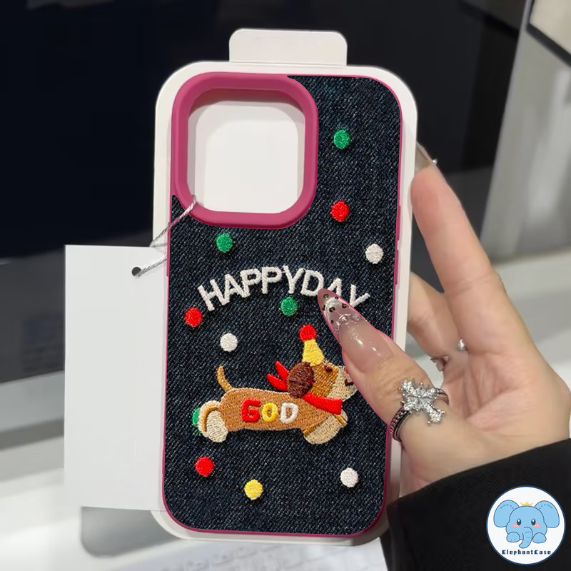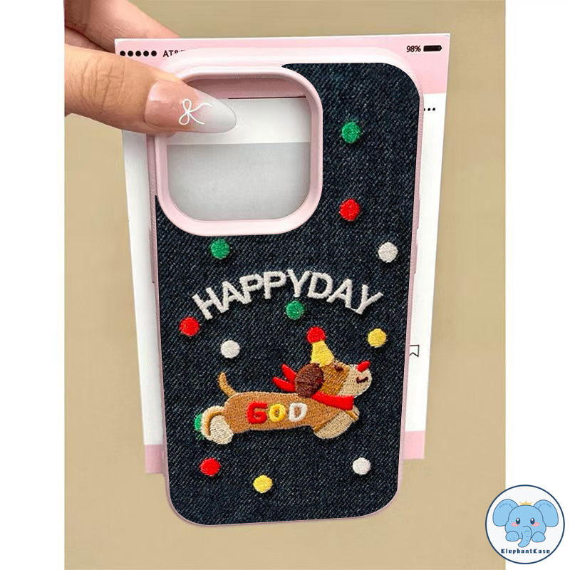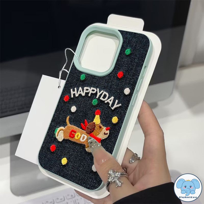 เคสไอโฟน13 สำหรับ IPhone 11 13 16 15 12 14 Pro Max XR X XS Max 16 15 7 Plus เคสคู่รักคาวบอยปักลายลูกสุนัขแสนสุขสีสันสดใส