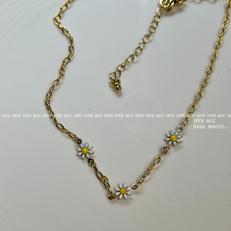 สร้อยคอกำไลน้ำหนักเบาสำหรับผู้หญิง ดีไซน์จี้ดอกไม้เดซี่ สไตล์เกาหลีสีสันสดใส