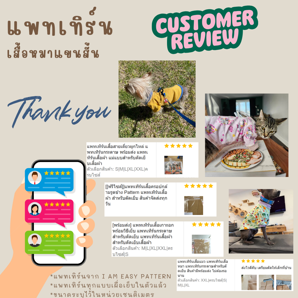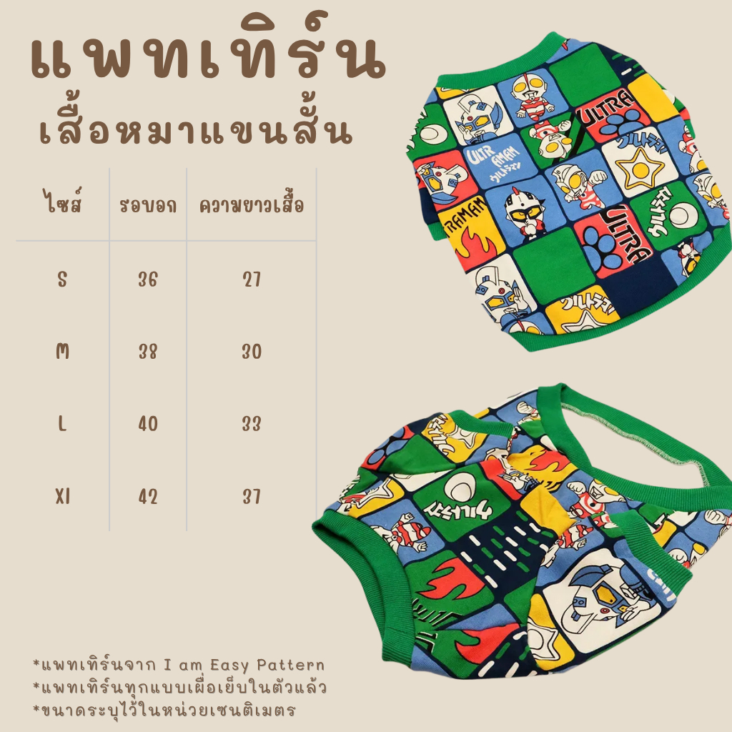 แพทเทิร์นเสื้อหมาแขนสั้น แพทเทิร์นเสื้อแมว แพทเทิร์นกระดาษสำหรับตัดเย็บ สินค้ามีพร้อมส่ง ไม่ต้องรอนาน