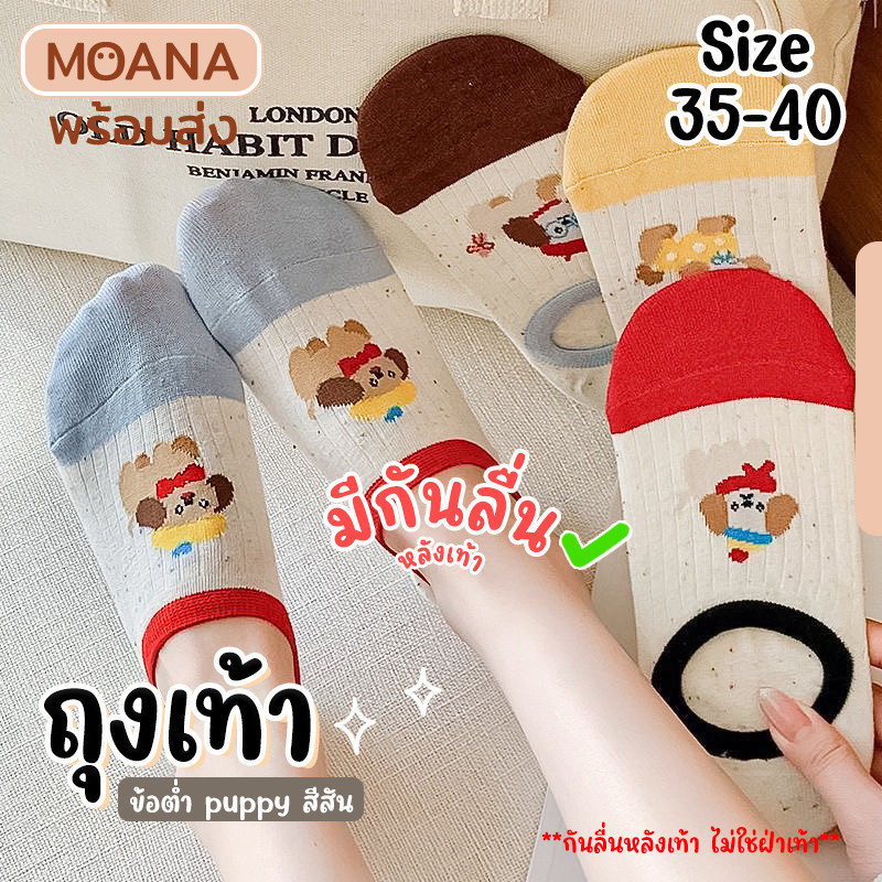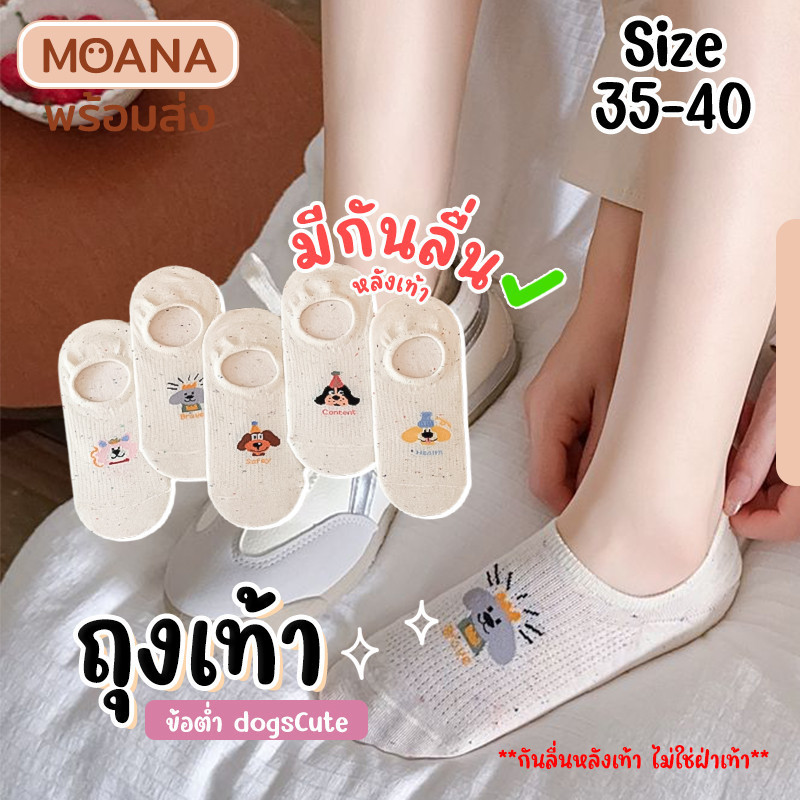 พร้อมส่ง : ถุงเท้า ข้อต่ำ bichon ขาวดำ 5 คู่ มีกันลื่น หรือไม่มีกันลื่น ลายน่ารัก เนื้อผ้านุ่ม