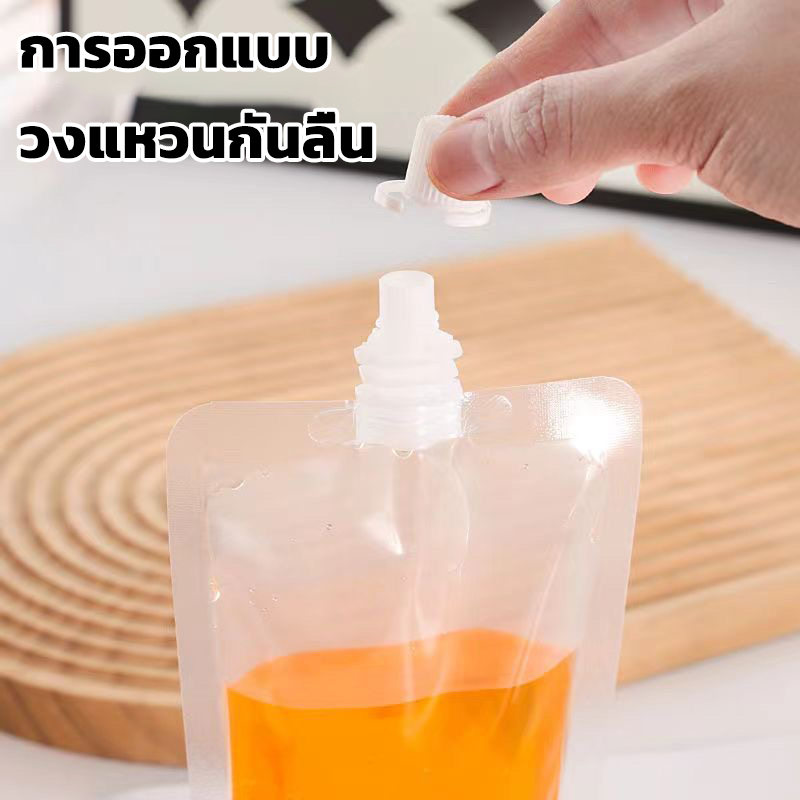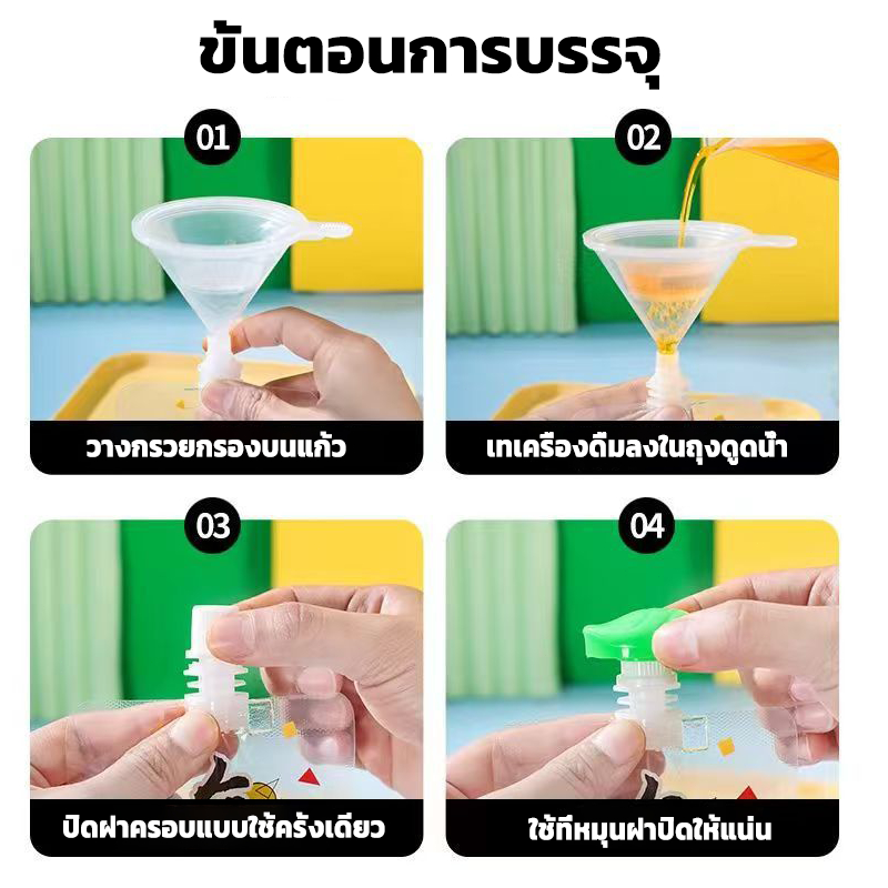 ถุงฝาเกลียว ตั้งได้ ถุงใส่น้ำ ถุงใส่น้ำจิ้ม ใส่เยลลี่ 100ใบ ราคาถูก กรวยกรอก + ฝาปิด