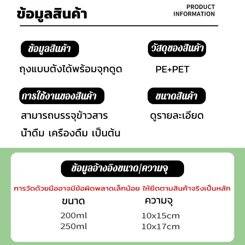 ? วัสดุ : Food Grade PP/PE - หนา ทนทาน ไม่รั่วซึม ไม่
