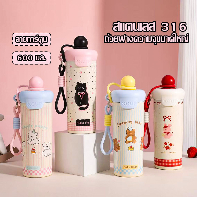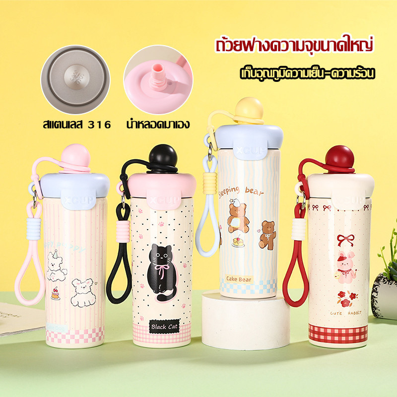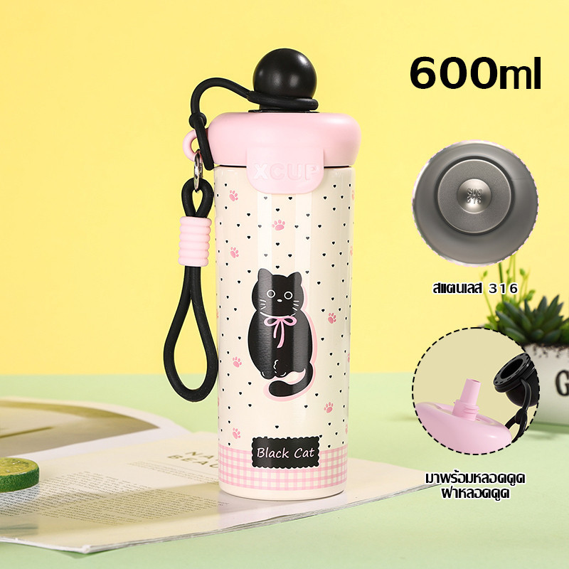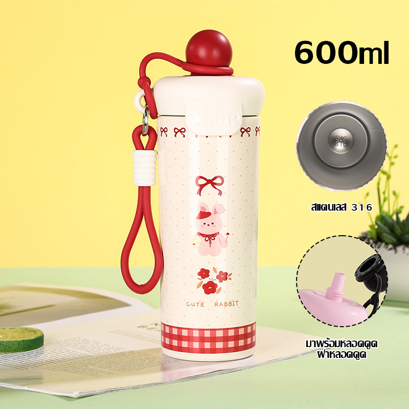 แก้วเก็บความเย็น น้ำเย็น สแตนเลส316 ถ้วยฟางความจุขนาดใหญ่ น่ารัก นักเรียน แบบพกพา 4 สี สำหรับน้ำร้อน Bottles 600ml-1653