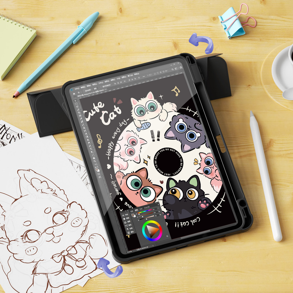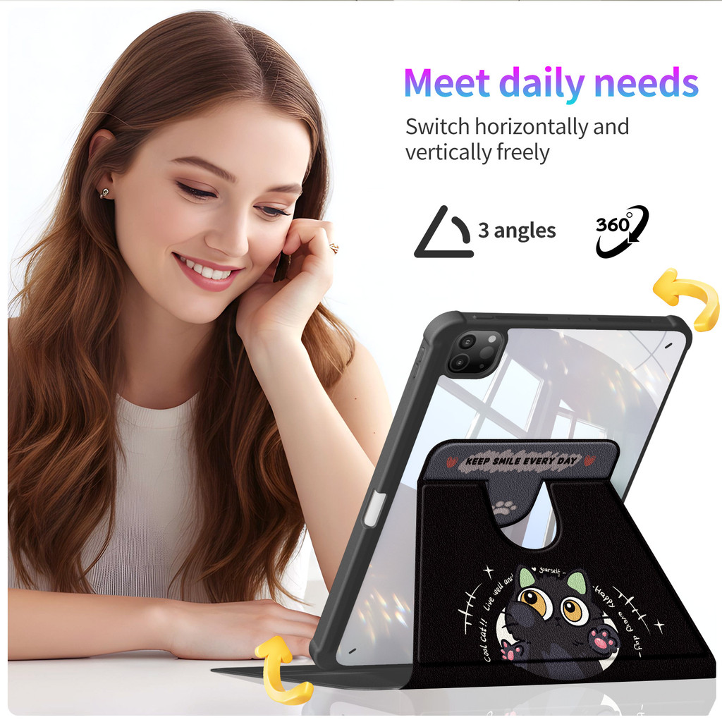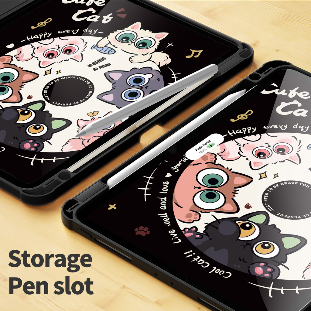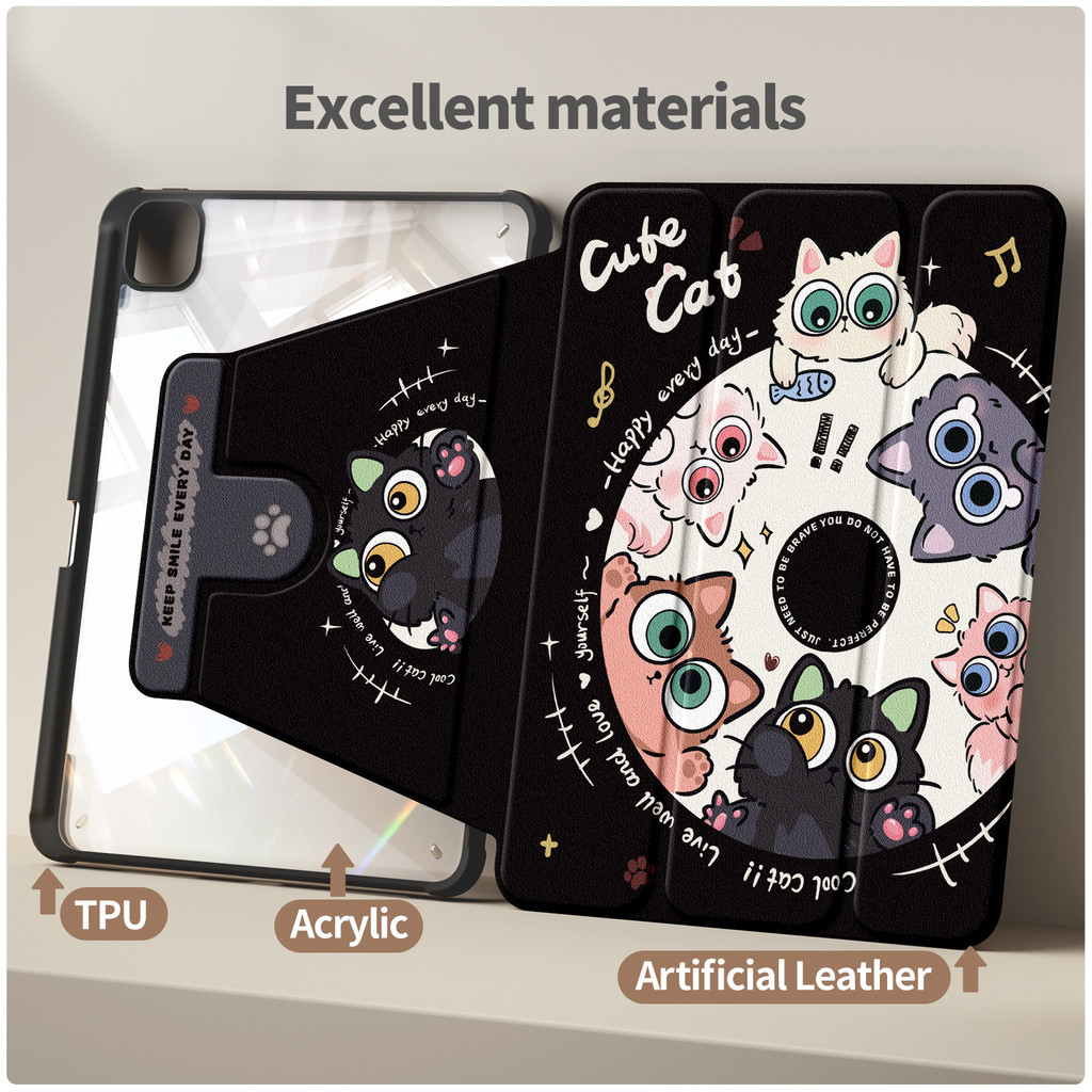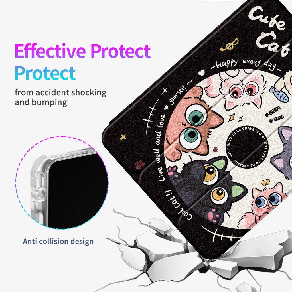 แมวการ์ตูนน่ารัก for Huawei MatePad 11.5 2025/12X/11.5S/Pro 12.2/Air 11.5/SE 11″10.4″ ป้องกันการงอ丨 360°หมุนได้丨ป้องกันสิ่งสกปรก丨ป้องกันการตก丨เคสหนังป้องกัน丨ช่องใส่ปากกา丨บางเบาและง่ายต่อการพกพา A127แมวน่ารัก