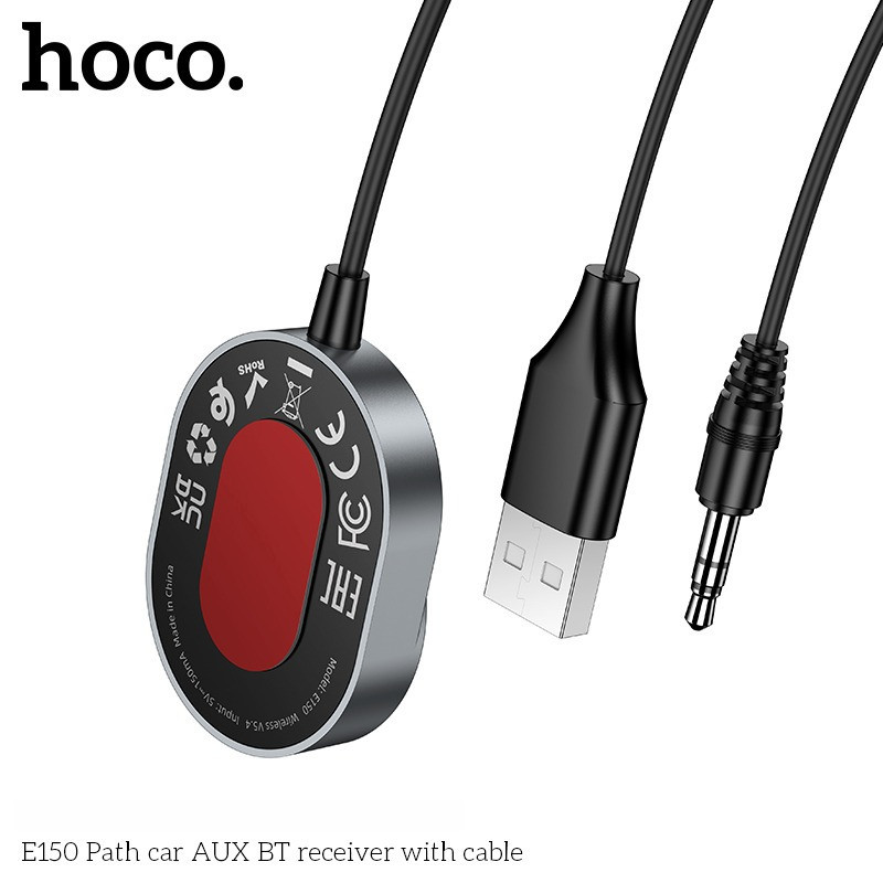 HOCO E150 บลูทูธรถยนต์ Bluetooth 5.4 AUX รองรับการโทร แฮนด์ฟรี สาย 1.5 เมตร เสียง HiFi Car BT Aux hc4