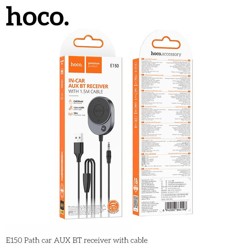 HOCO E150 บลูทูธรถยนต์ Bluetooth 5.4 AUX รองรับการโทร แฮนด์ฟรี สาย 1.5 เมตร เสียง HiFi Car BT Aux ตัวรับสัญญาณบลูทูธ In-Car AUX Bluetooth Receiver with 1.5m Cable