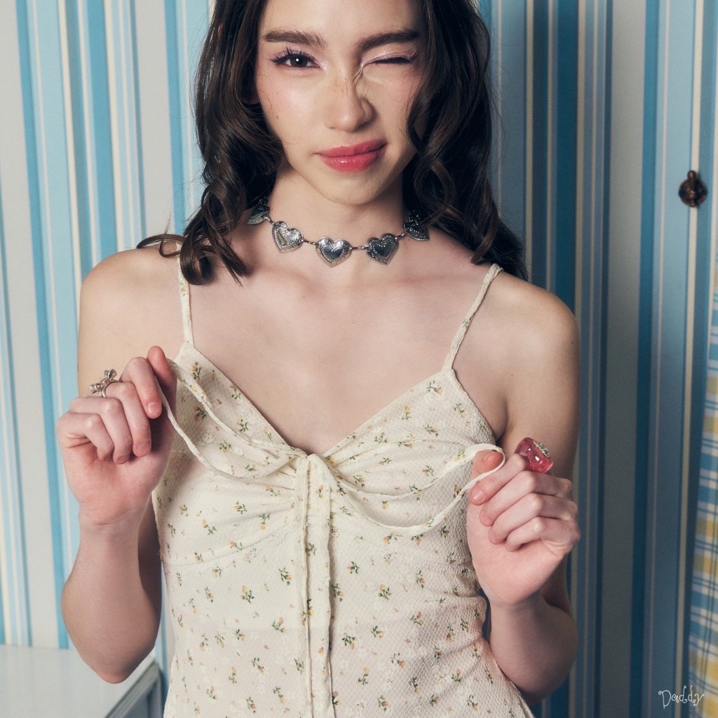 ? เดรสผ้ายืดลูกไม้ มีลายพิมพ์เป็นดอกไม้เล็กๆ มีมาให้เลือกถึง 3 สีคือ ครีม ชมพู และฟ้า