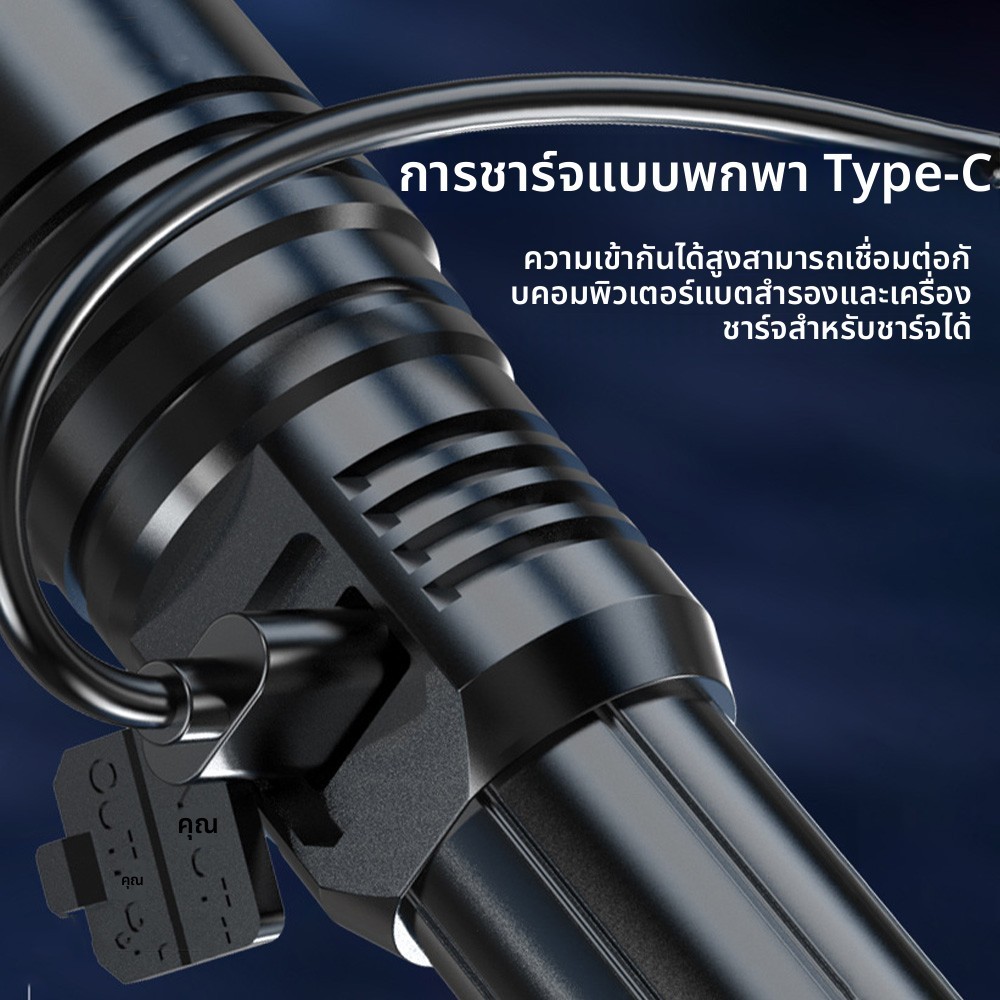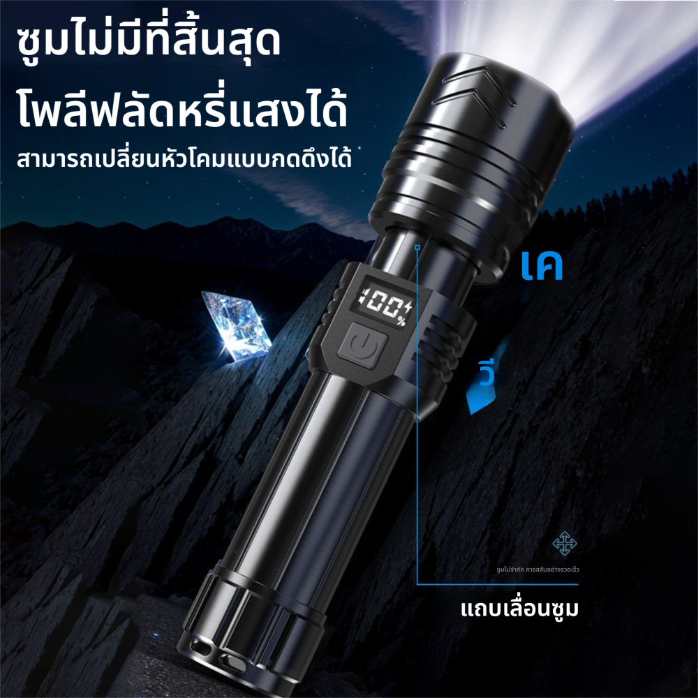 【ไฟฉายโฟกัสซูมไ】ไฟฉายกลางแจ้ง โหมดแบบพกพา ไฟฉายกันน้ำแท้ เหมาะสําหรับการตั้งแคมป์และเดินป่า ไฟฉาย Led