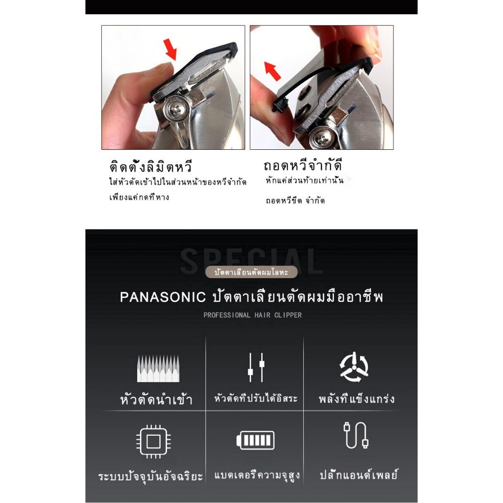 panasonic เครื่องตัดผมไร้สาย แบตเตอรี่ความจุสูง LCD แสดงระดับพลังงาน ที่เหลือ ตัดหัวทรงกลมออกแบบให้ไม่ทำร้ายหนังศีรษะ