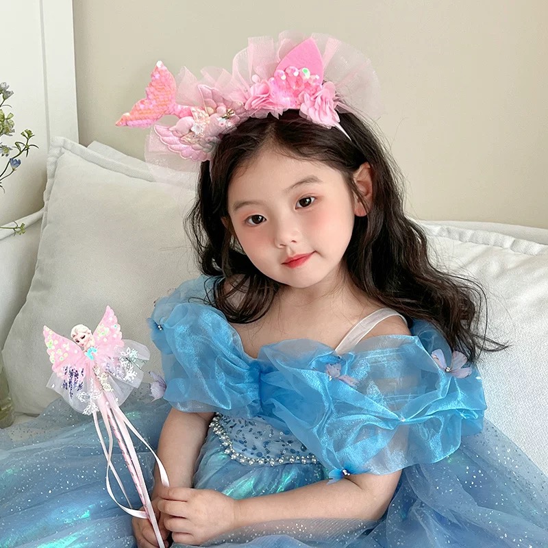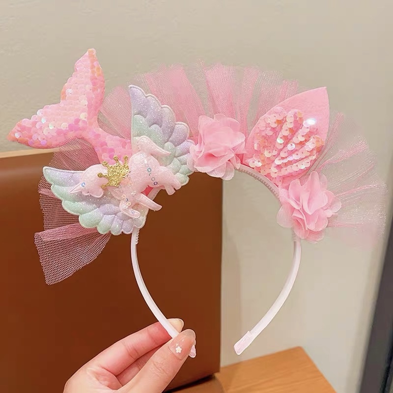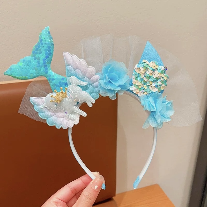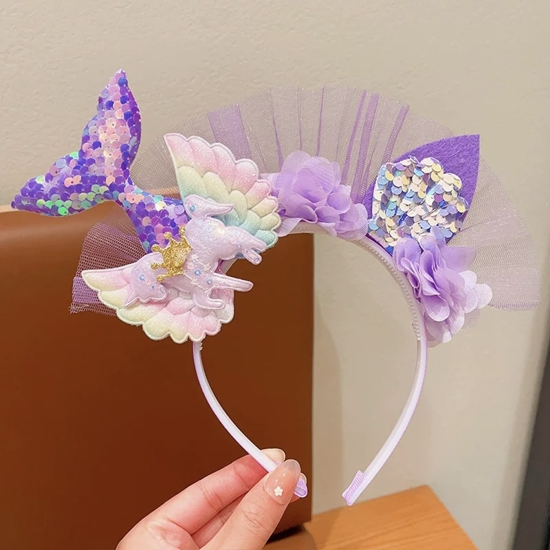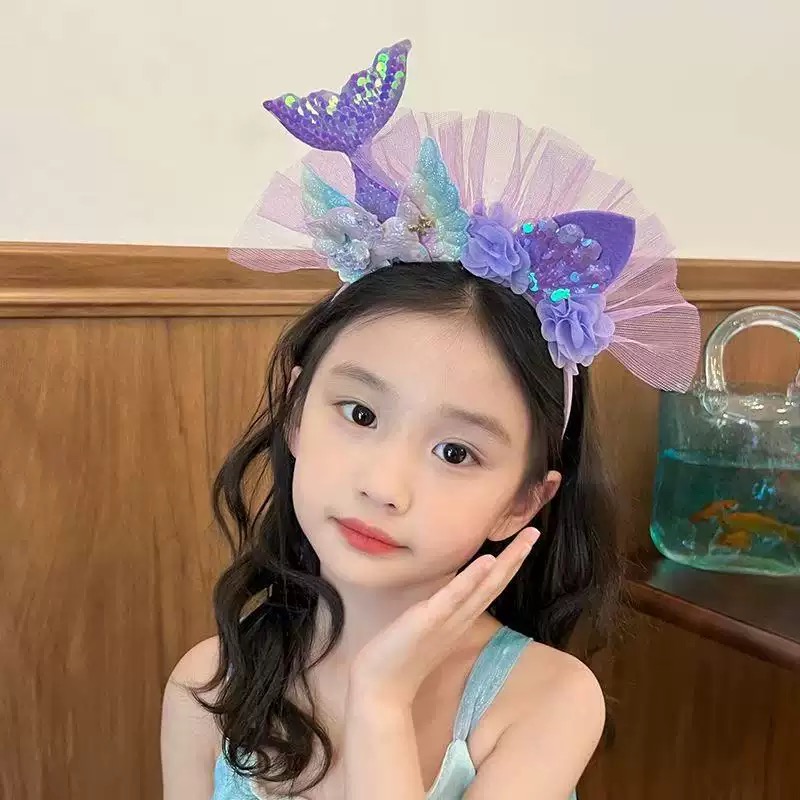 ที่คาดผมเด็กผู้หญิงหางนางเงือกดอกไม้ที่คาดผม Tulle สําหรับเครื่องประดับผมงานเลี้ยงวันเกิดเจ้าหญิงน้อย