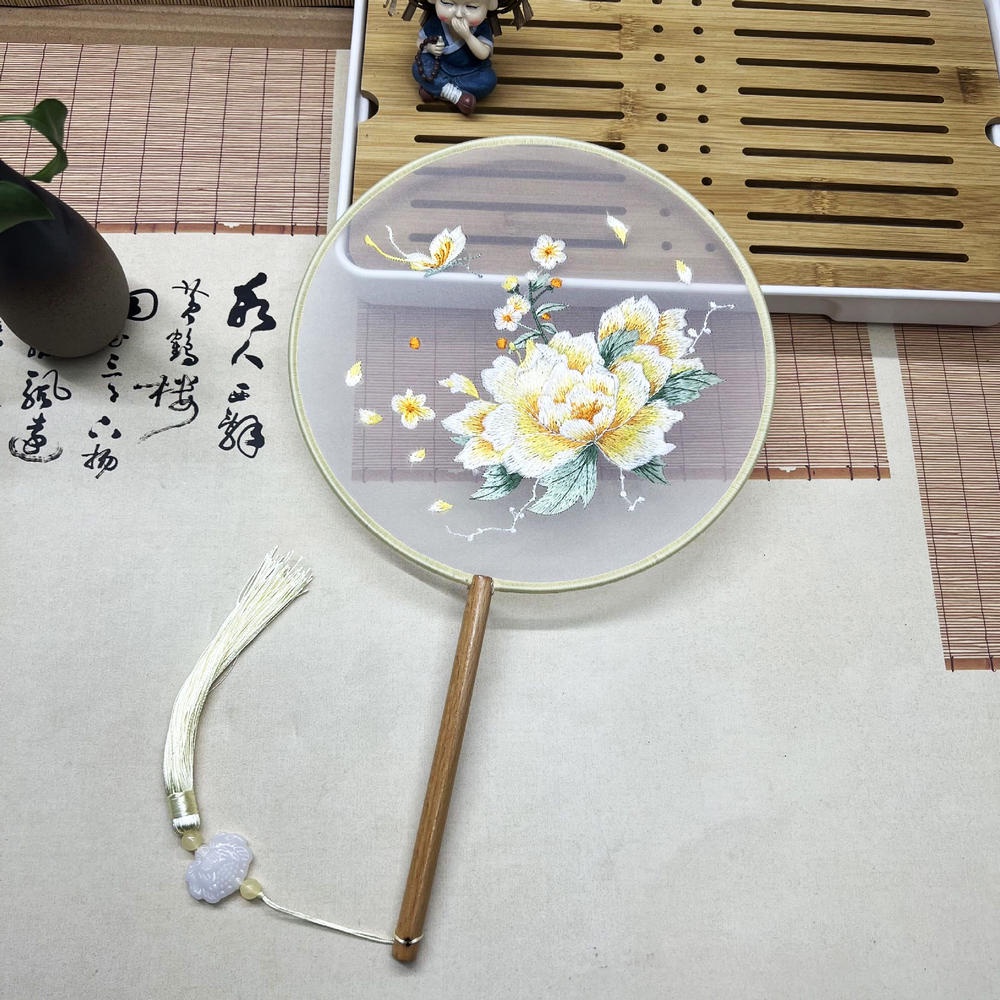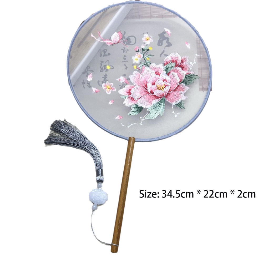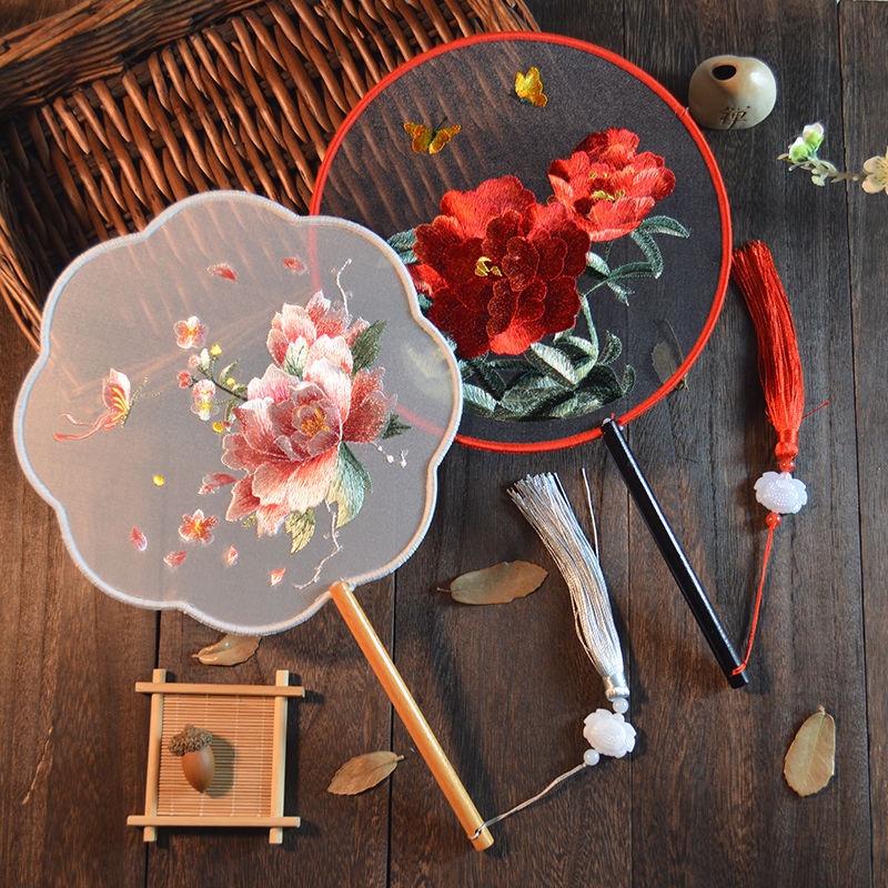 ??❗️[พร้อมส่ง] พัดจีนลูกไม้ดำมีขนนกใหญ่ มีกุกลาบติด อลังการ
