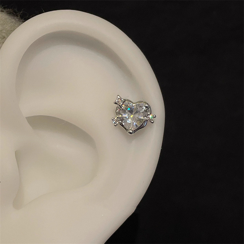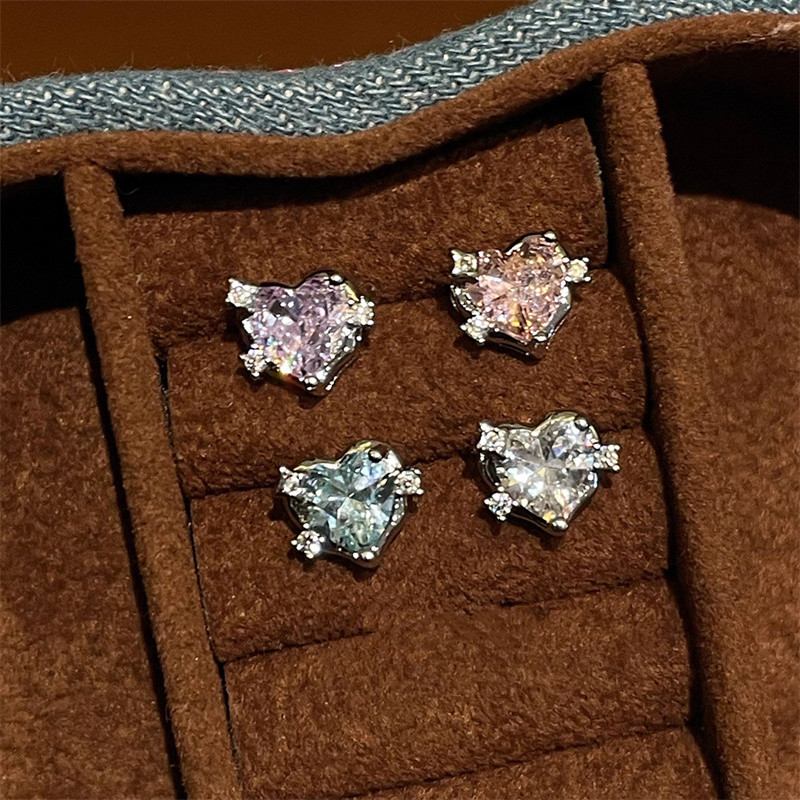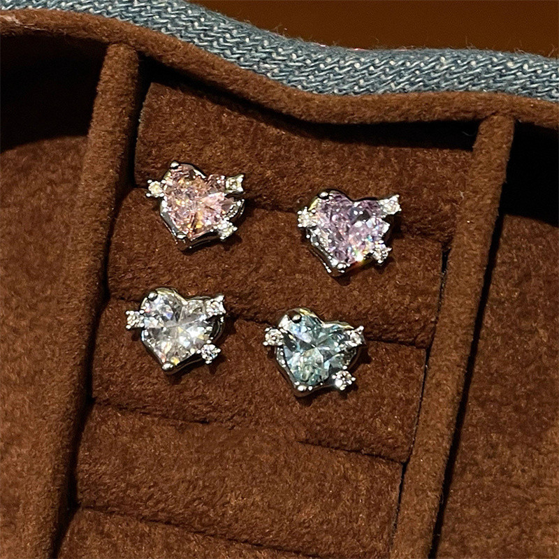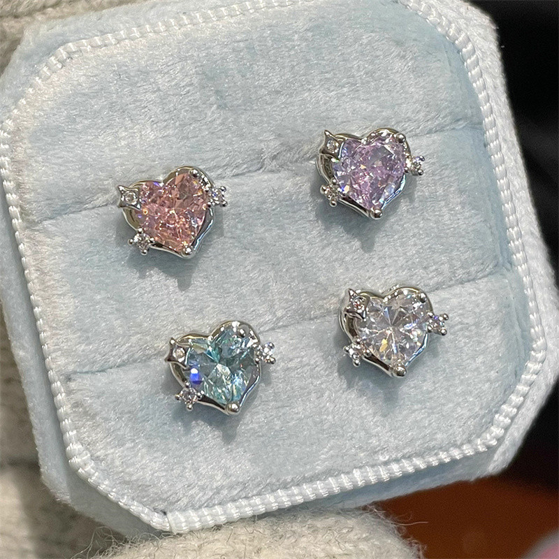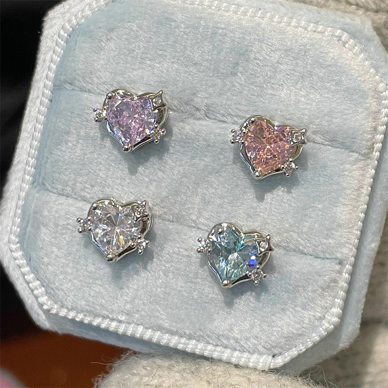 ต่างหูทรงเรขาคณิตรูปหัวใจทำจากคริสตัลและโลหะผสม สไตล์สวยงามสำหรับสุภาพสตรี