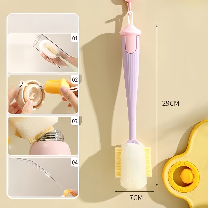 แปรงทำความสะอาดขวดนม ดูดหลอด ฝาหม้อ กระติกน้ำร้อน แปรงอเนกประสงค์ 5 IN 1 แบบด้ามยาว แปรงซิลิโคนนุ่ม สะอาดล้ำ ใช้ง่าย สำห