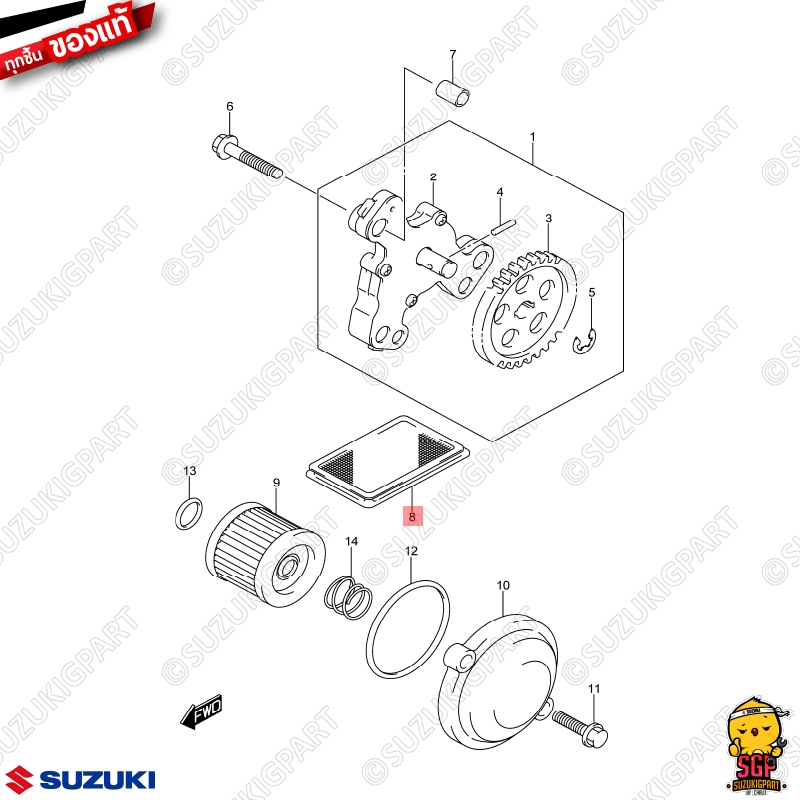 ตะแกรงกรองน้ำมันเครื่อง STRAINER, ENGINE OIL แท้ Suzuki Smash / Shogun / Shooter / Best / Raider / Hayate / Skydrive