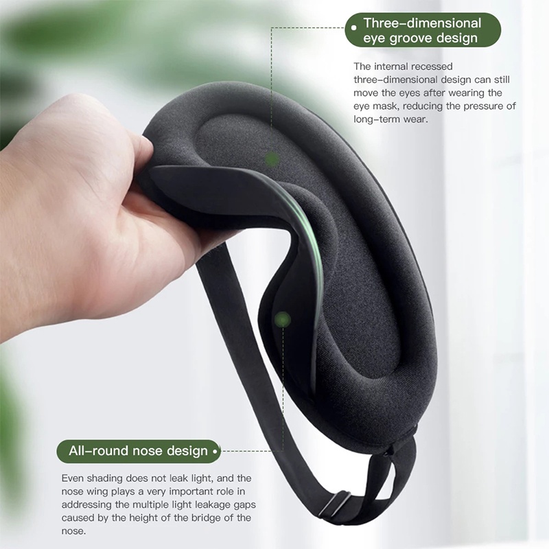 0 pressure 3D space Design: พื้นที่รอบดวงตาของเรากว้างและลึกกว่าหน้ากากตาแบบแบนแบบเดิมไม่มีแรงกดบนลูกบอลตาใบหน้าหรือศีรษะจะไม่ถูขนตาด้วยการใช้ ที่อุดหูฟรีของเราคุณสามารถเพลิดเพลินกับการนอนหลับที่ไม่ถูกรบกวนได้อย่างรวดเร็ว