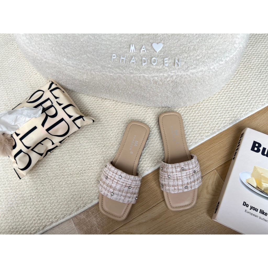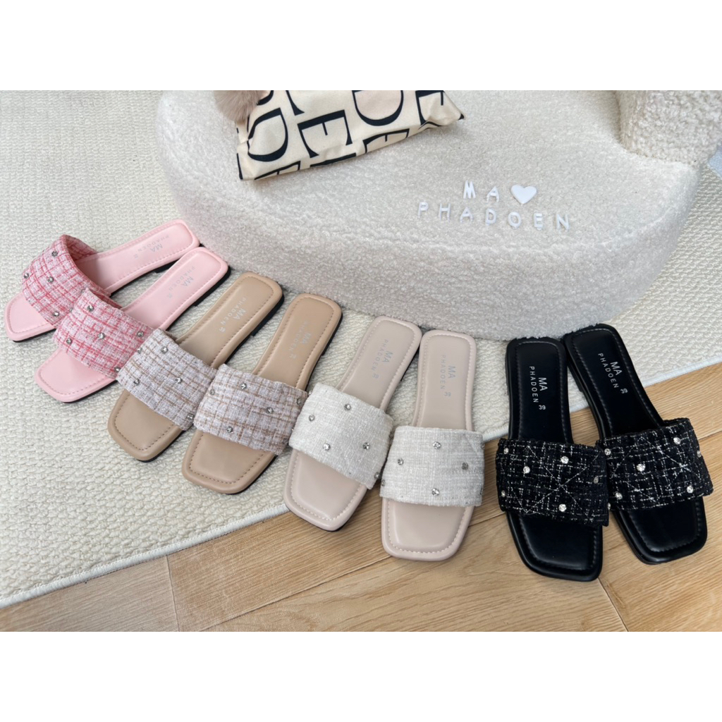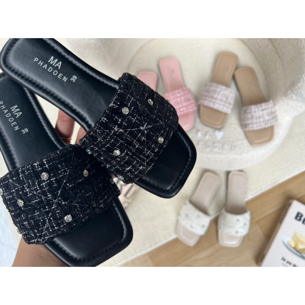 รองเท้าแตะแบบสวม ผ้าทวิตติดเพชร พื้นหนานุ่มเป็นพิเศษ น่ารักมากค่ะ
